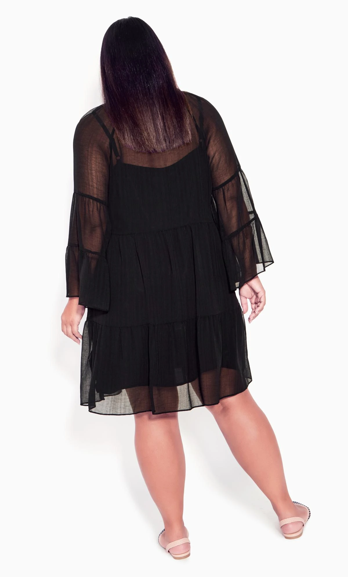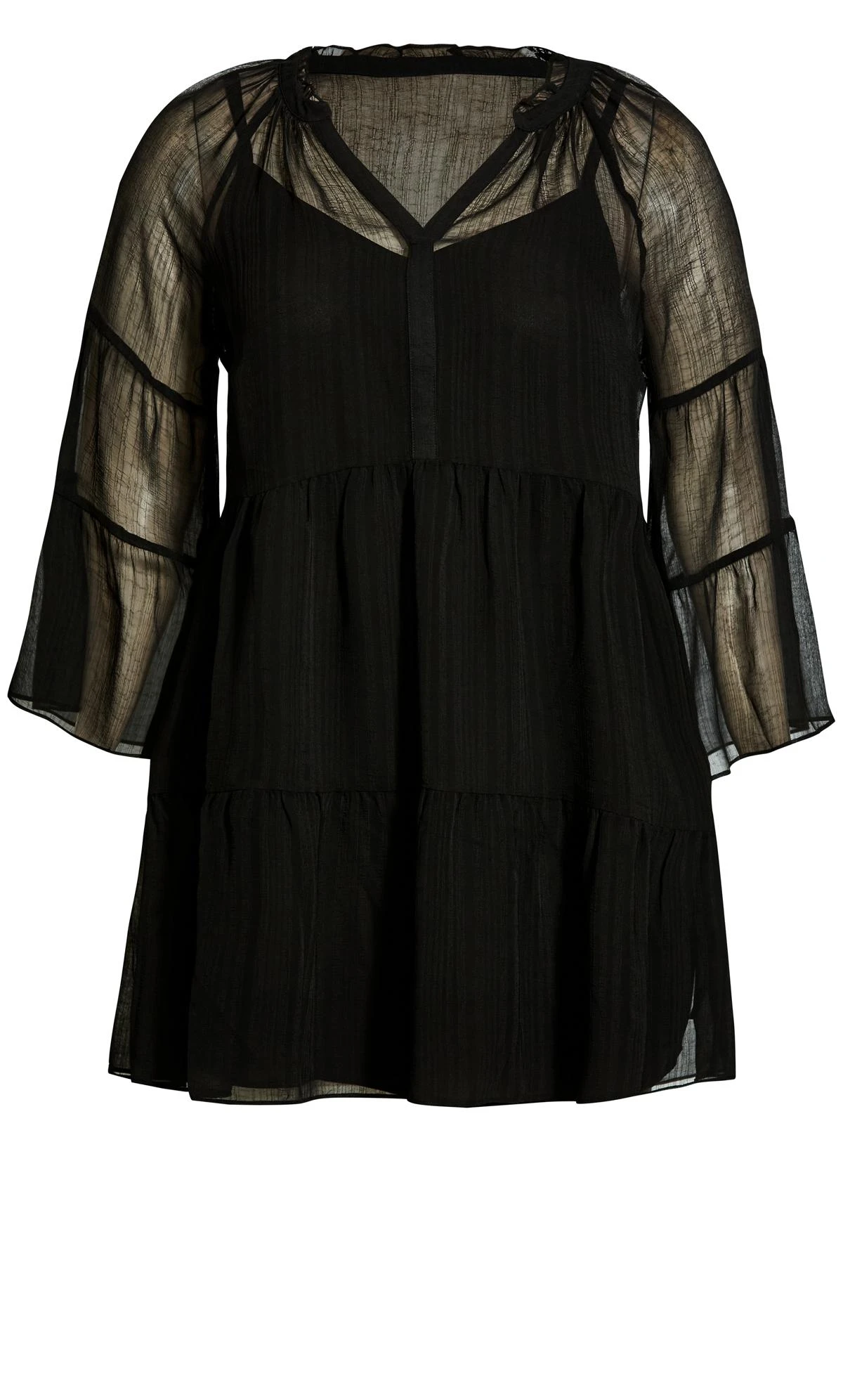 – 3/4 length tiered ruffle sleeves