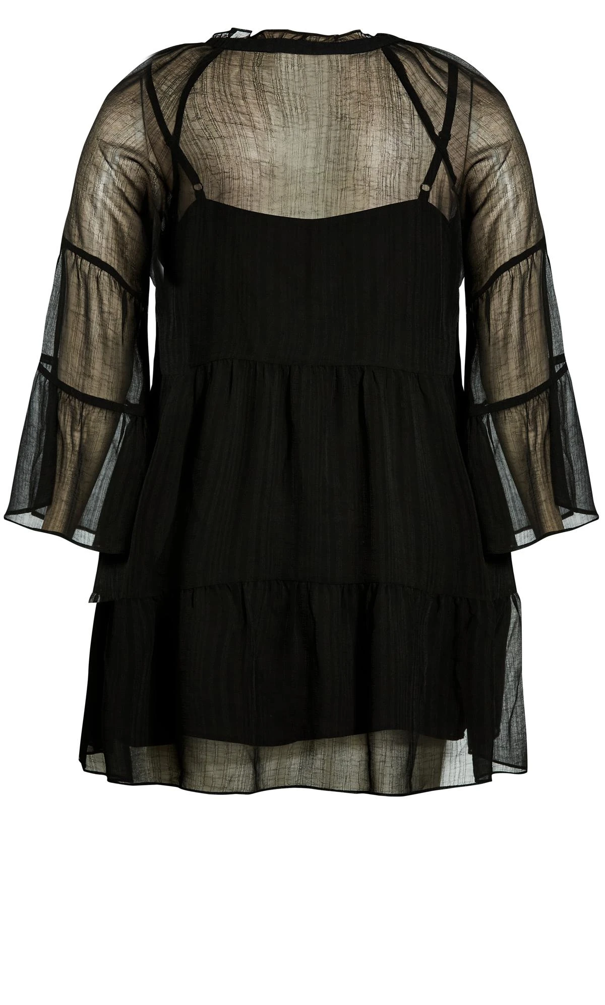 – Semi-sheer overlay with cami included