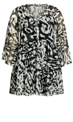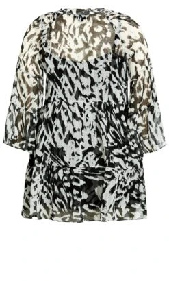 – Placket V-neckline with ruffle trim