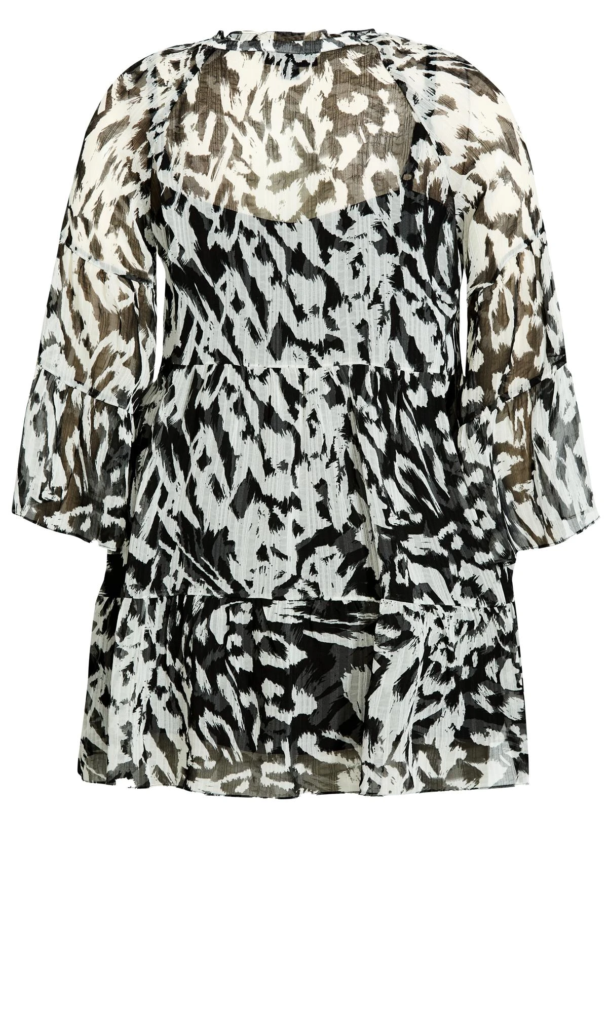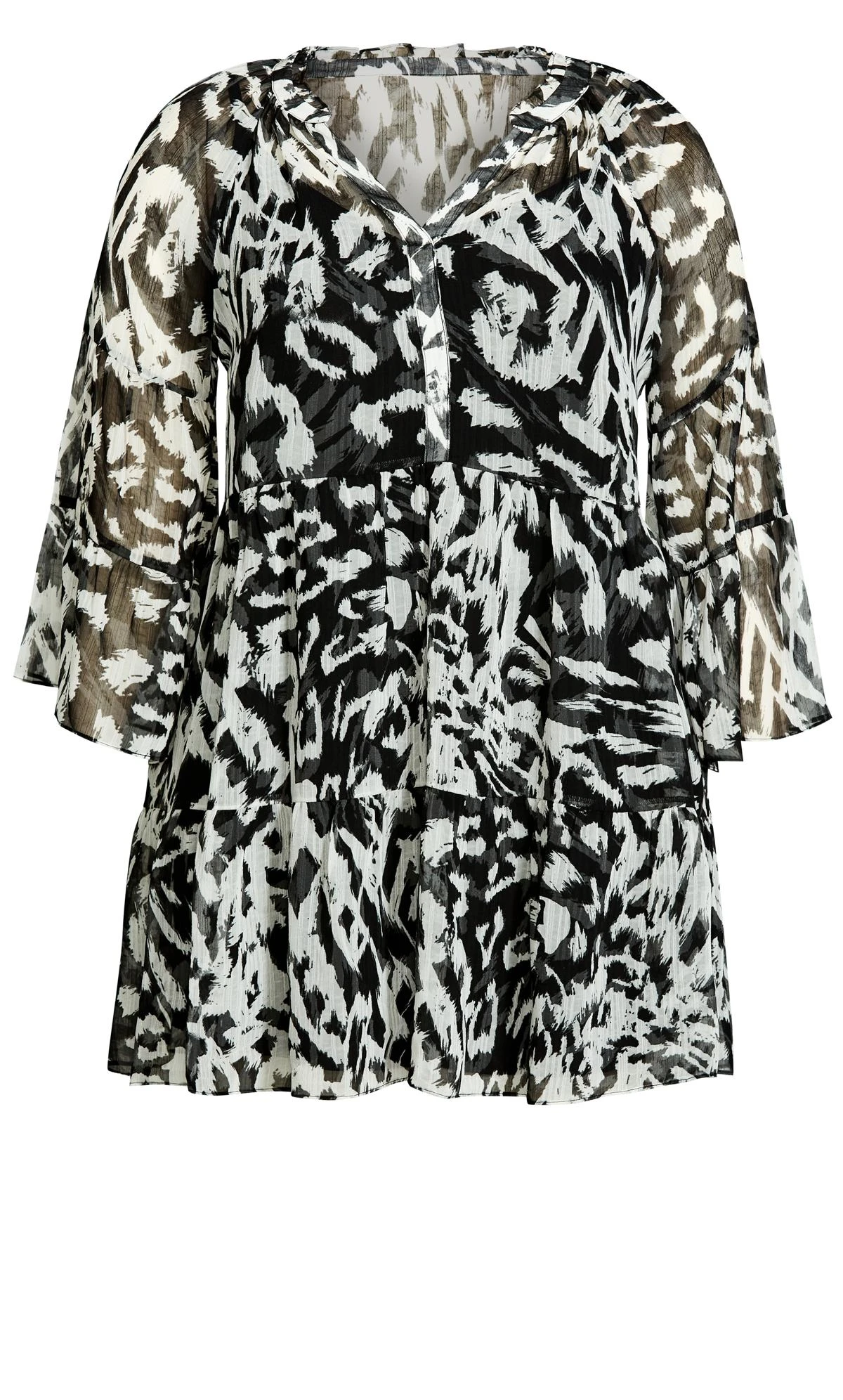 – 3/4 length tiered ruffle sleeves