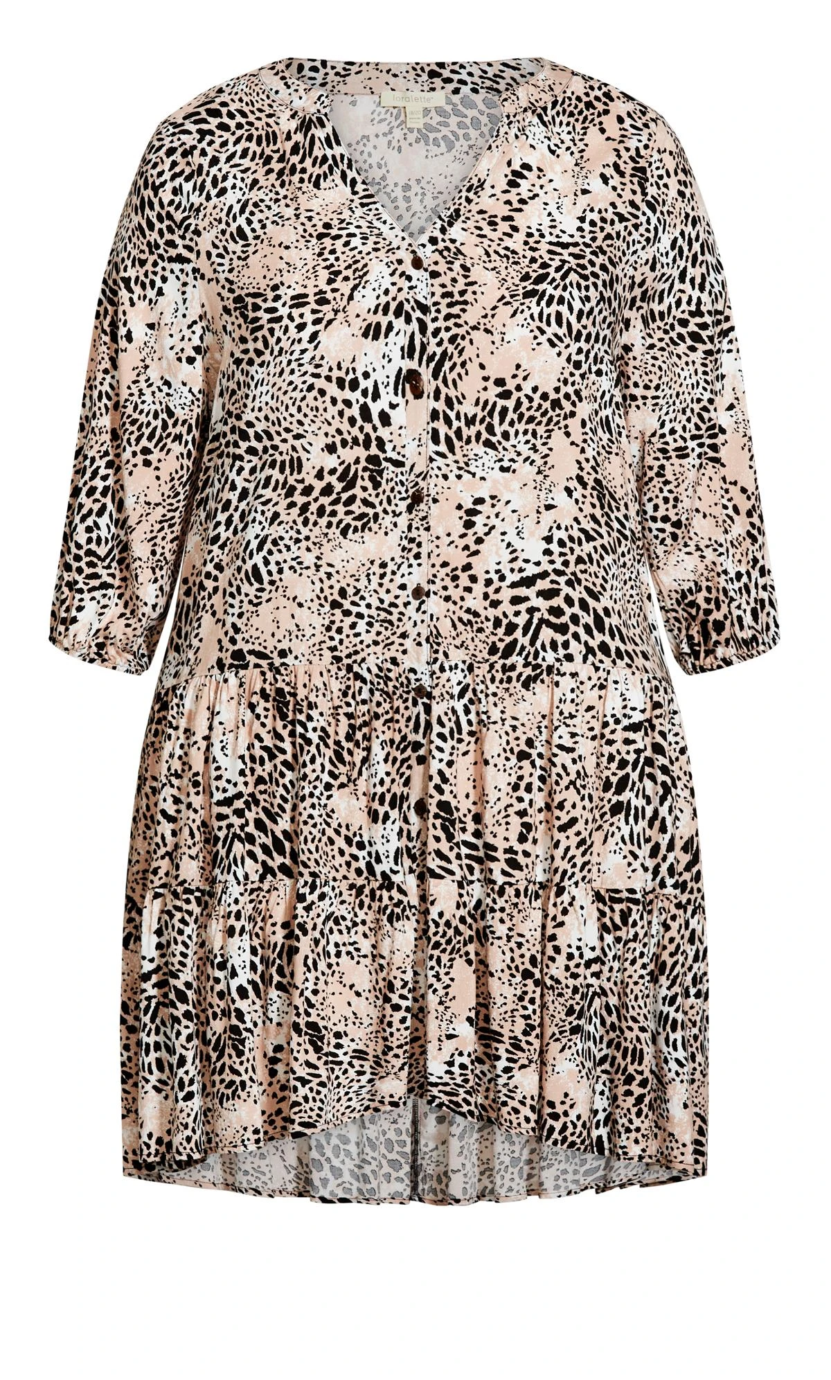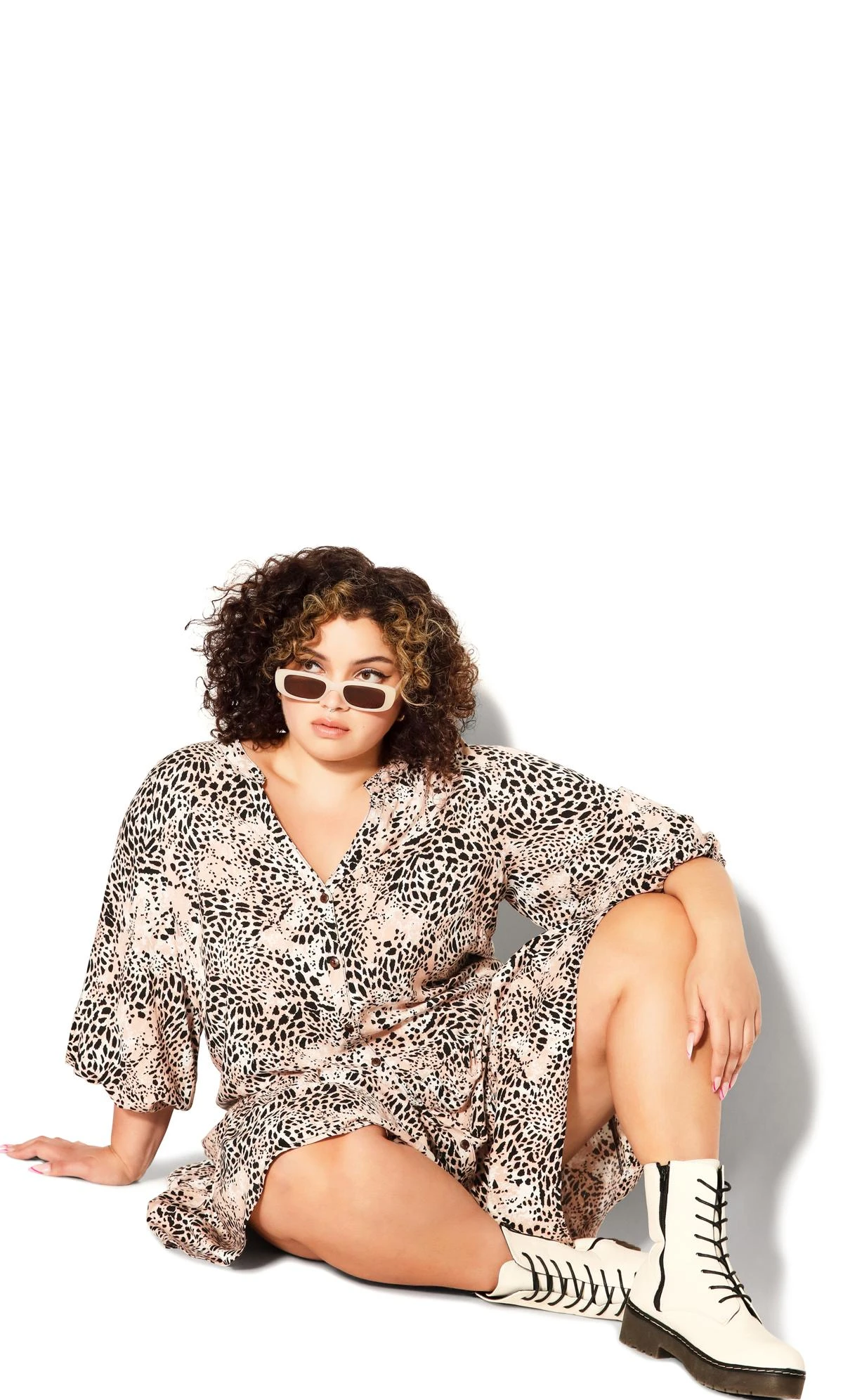 Elevate your style with the Avenue Black Animal Spot Smock Mini Dress, a fusion of playful charm and fashion-forward design. The black hue sets the stage for the bold animal spot pattern, creating a dynamic and eye-catching ensemble. Embrace a relaxed yet trendy silhouette with this mini dress, a versatile addition that effortlessly embodies both comfort and modern flair.