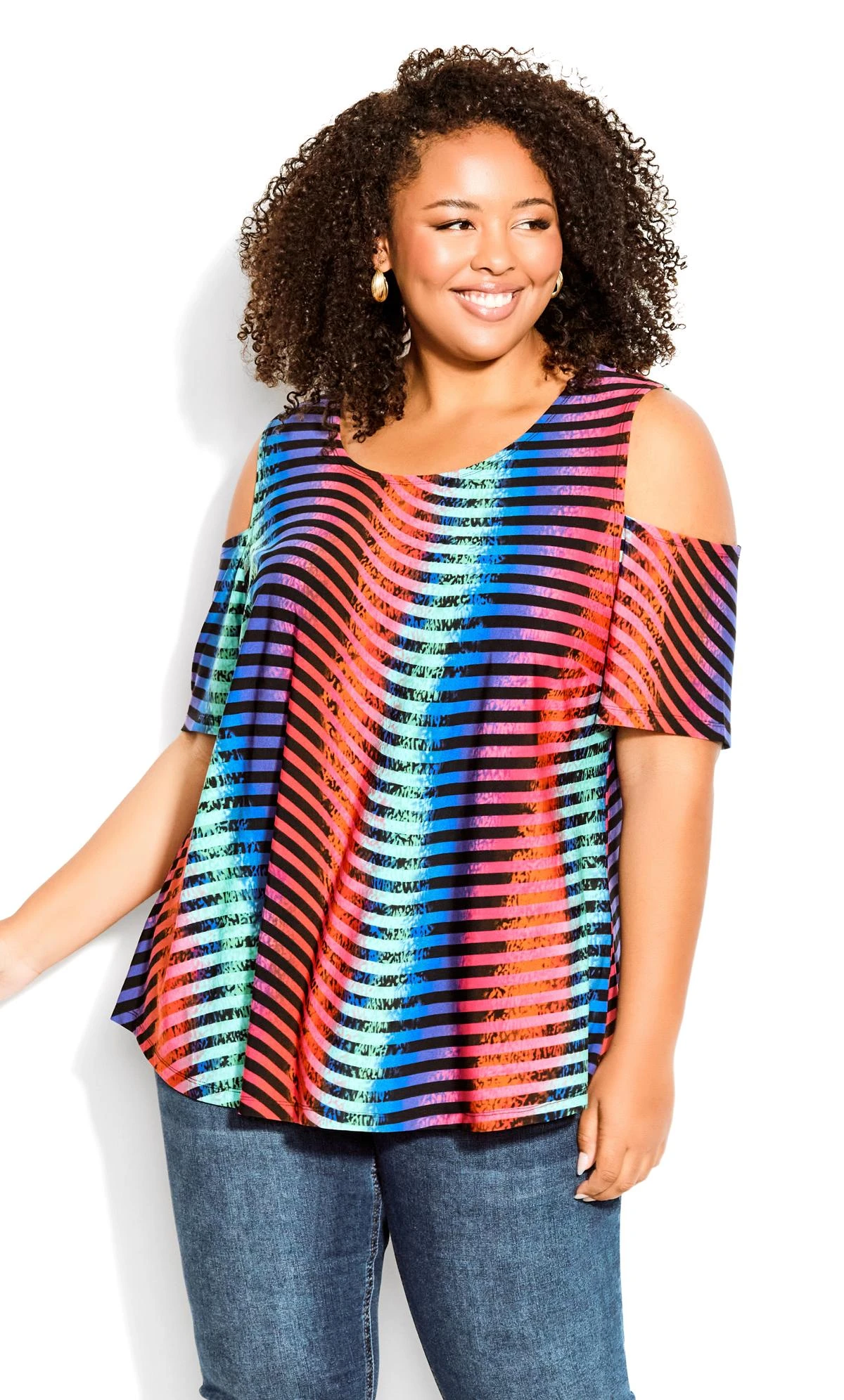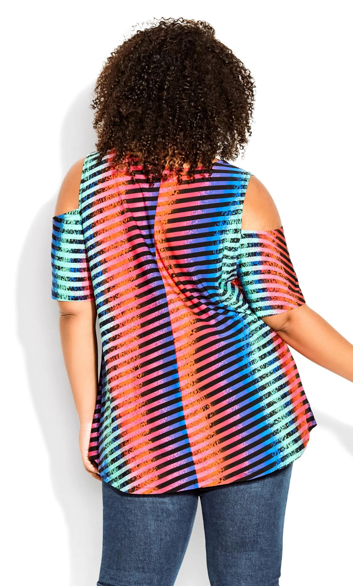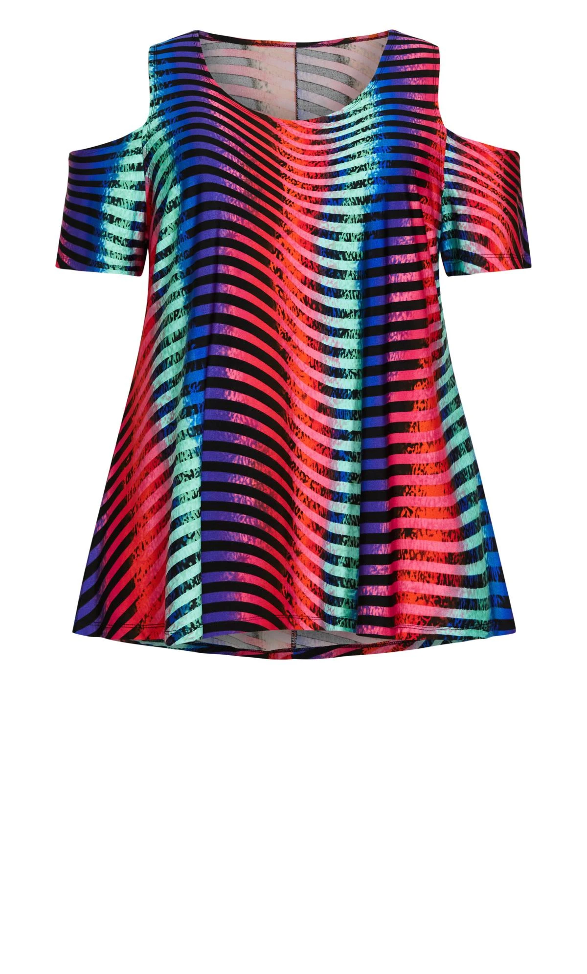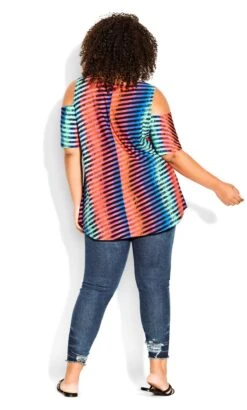 Revamp your look with the Avenue Black & Neon Stripe Cold Shoulder Top. Combining edgy style with vibrant flair, this top features eye-catching neon stripes against a timeless black backdrop, creating a striking contrast. The cold shoulder design adds a touch of contemporary elegance, making this top a statement piece that effortlessly transitions from day to night.