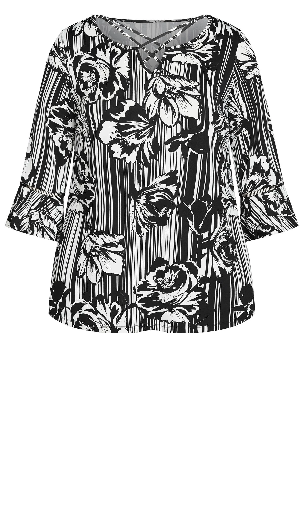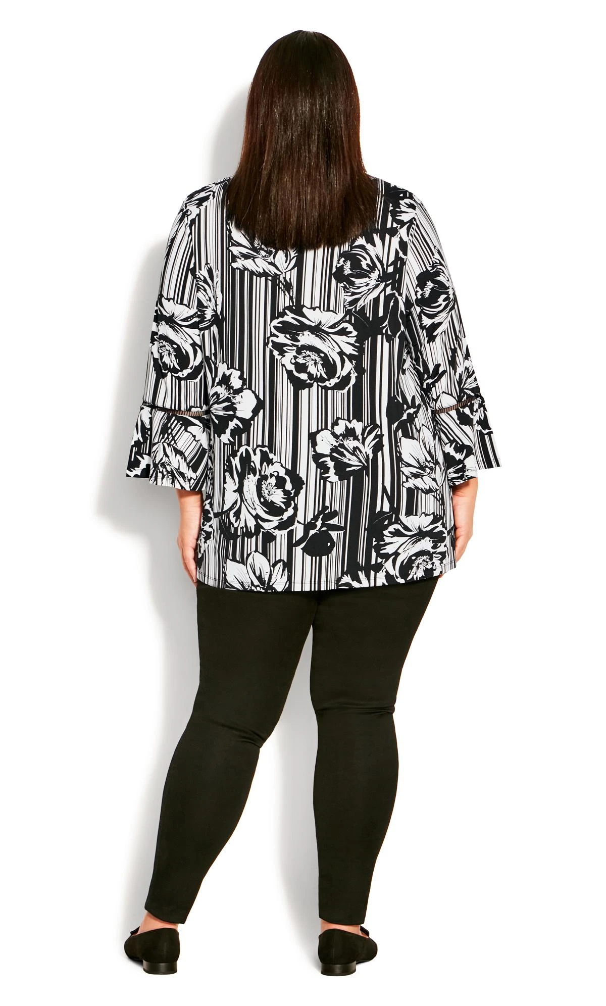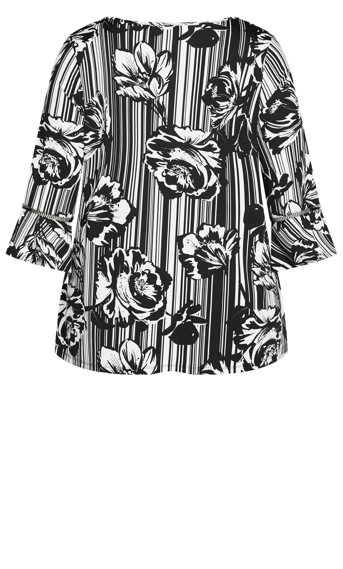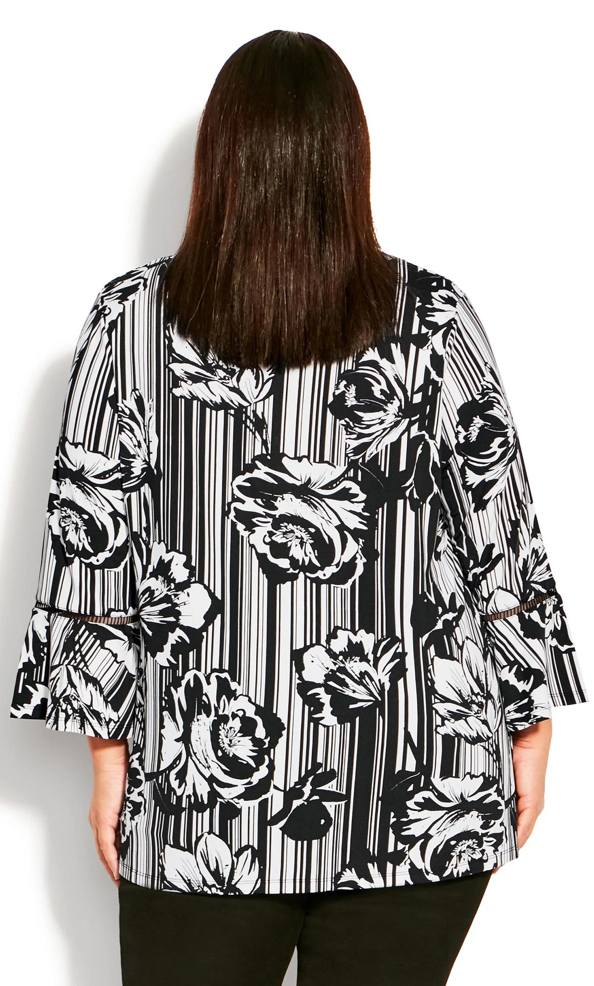 – 3/4 length flare sleeves with lattice trim insert