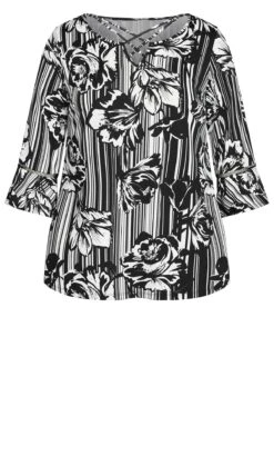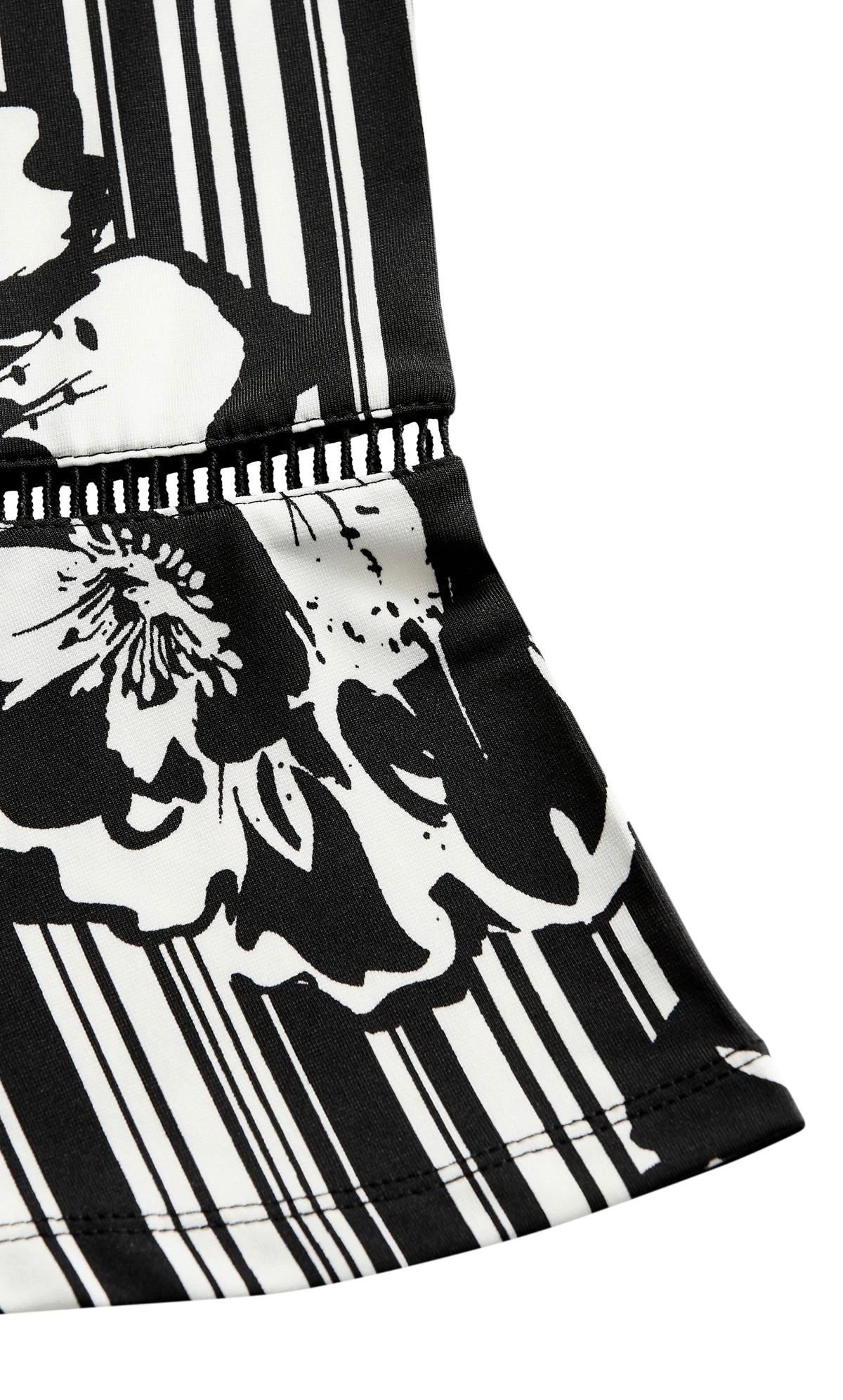 – Notch neckline with crossover cage strap detail