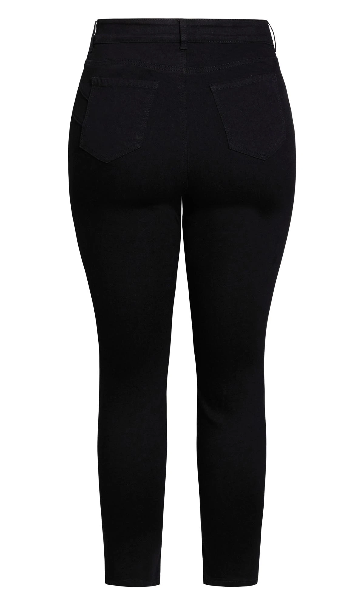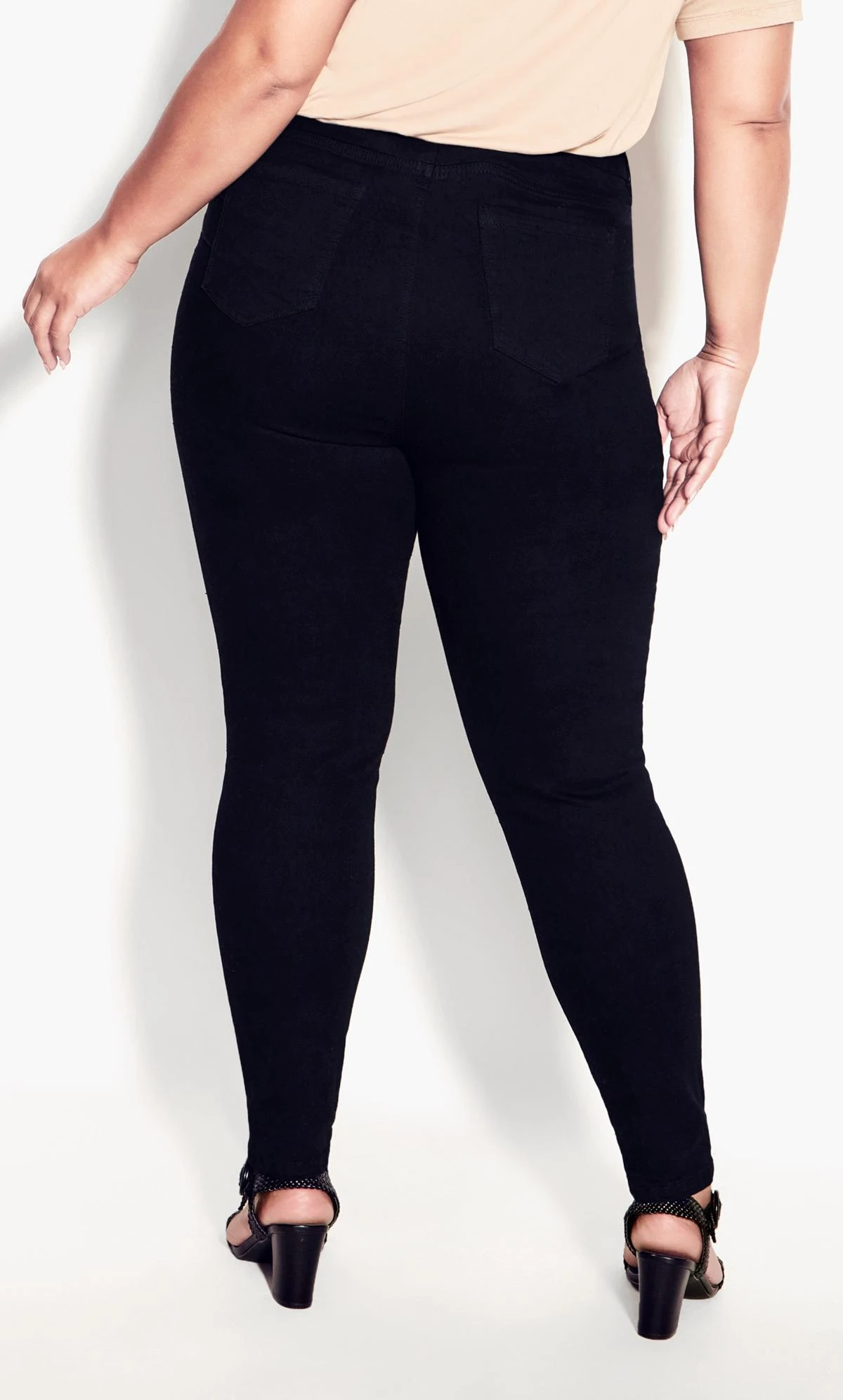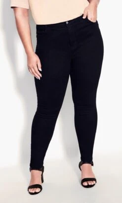 Elevate your denim collection with Avenue’s Black Skinny Jeans. The classic black hue meets a flattering skinny fit, offering both style and versatility. Perfect for casual outings or dressing up, these jeans effortlessly combine comfort and fashion, making them an essential addition to your wardrobe for a sleek and chic look.
