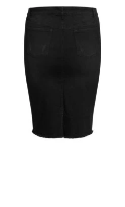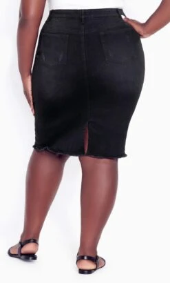 Introducing Avenue’s Black Stretch Denim Skirt – where style meets unparalleled comfort. Crafted with a hint of stretch, this denim skirt promises a flawless fit while its classic black hue offers endless pairing possibilities, making it a versatile must-have for any fashion-forward wardrobe.
