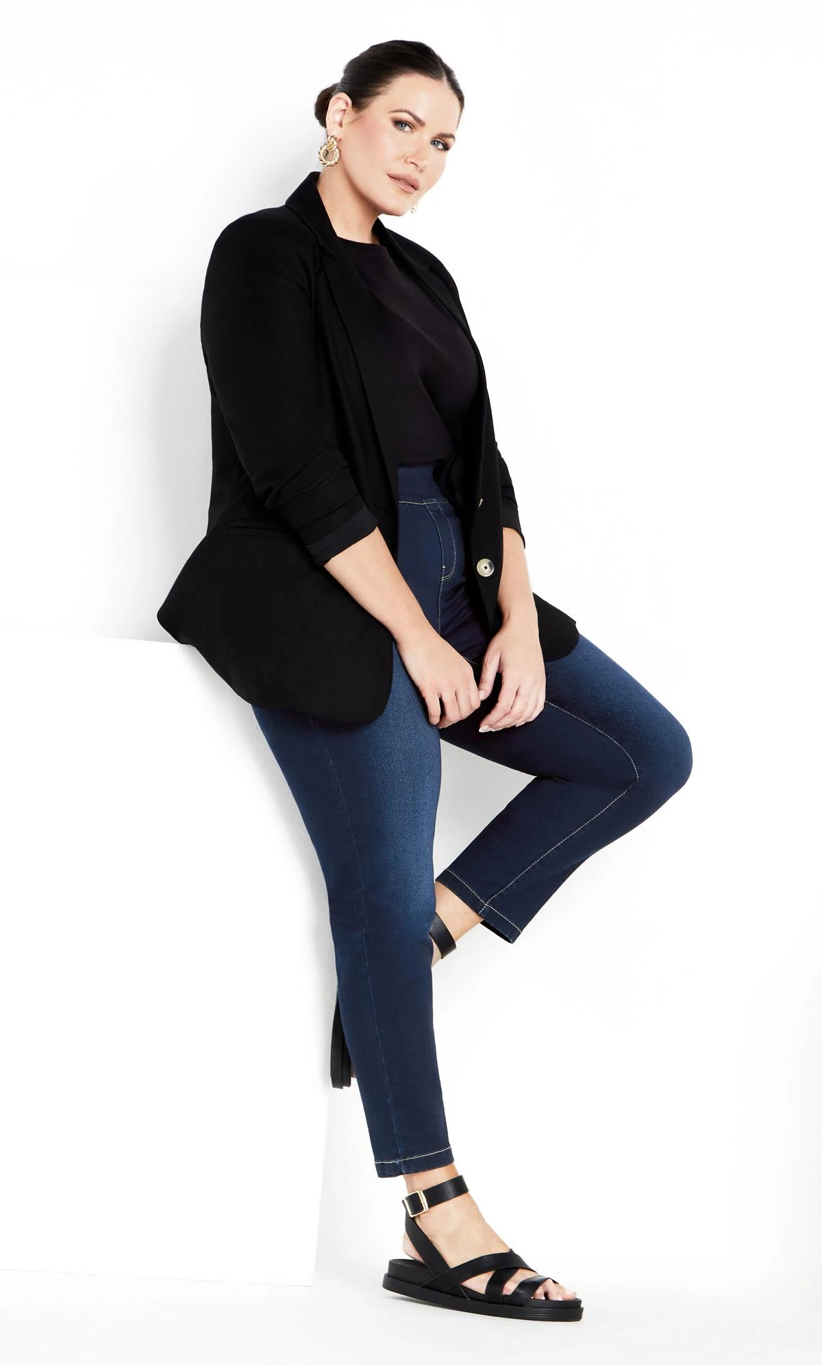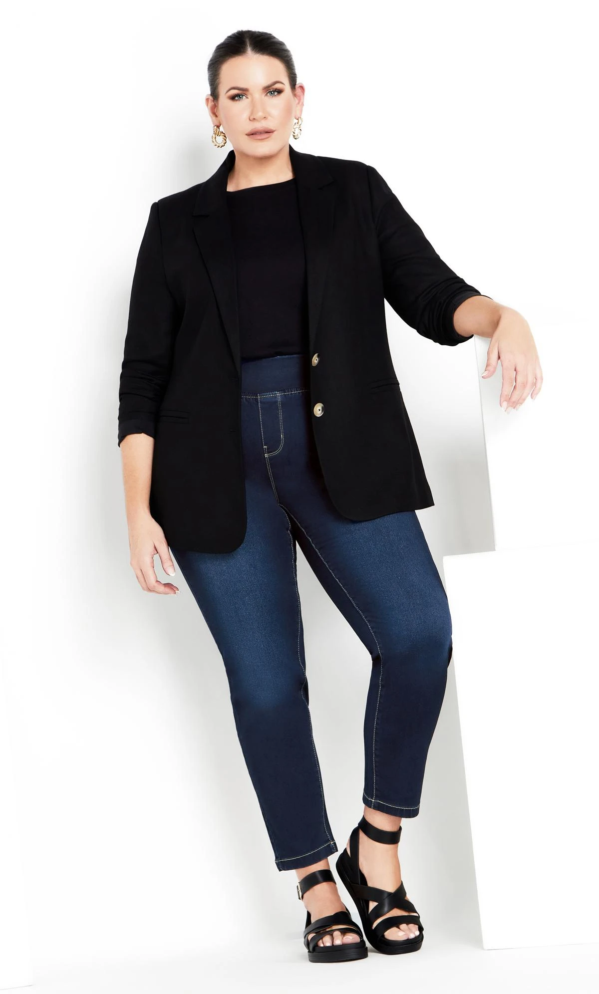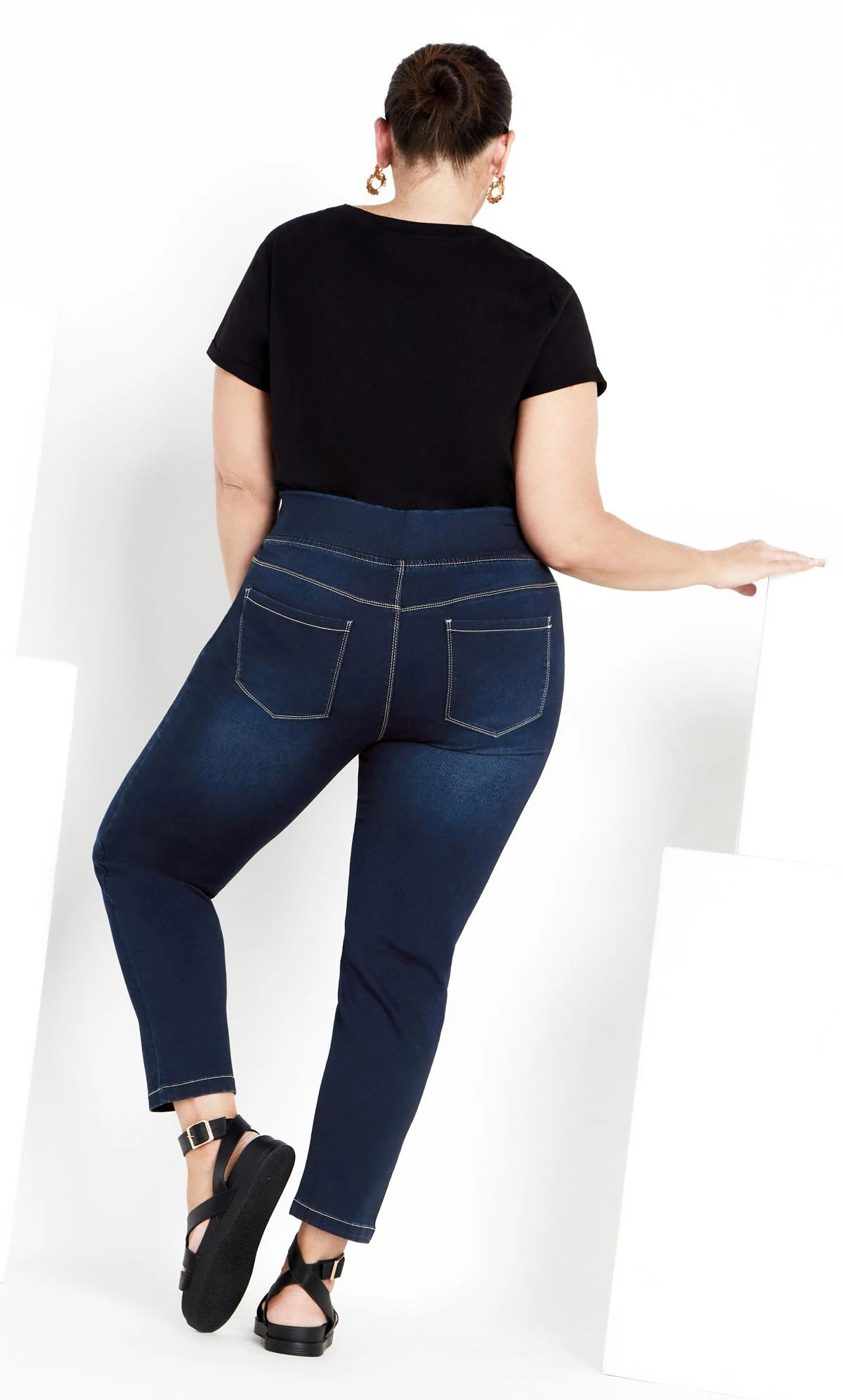 Elevate your denim collection with the Avenue Black Pull On Skinny Jeans. These jeans effortlessly blend comfort and style, featuring a sleek black design and a pull-on style that ensures a flattering fit without compromising on comfort. The skinny silhouette offers a versatile look that pairs well with various tops and shoes. Embrace the ease and elegance of these jeans that seamlessly combine fashion and functionality, becoming a staple in your everyday wardrobe.