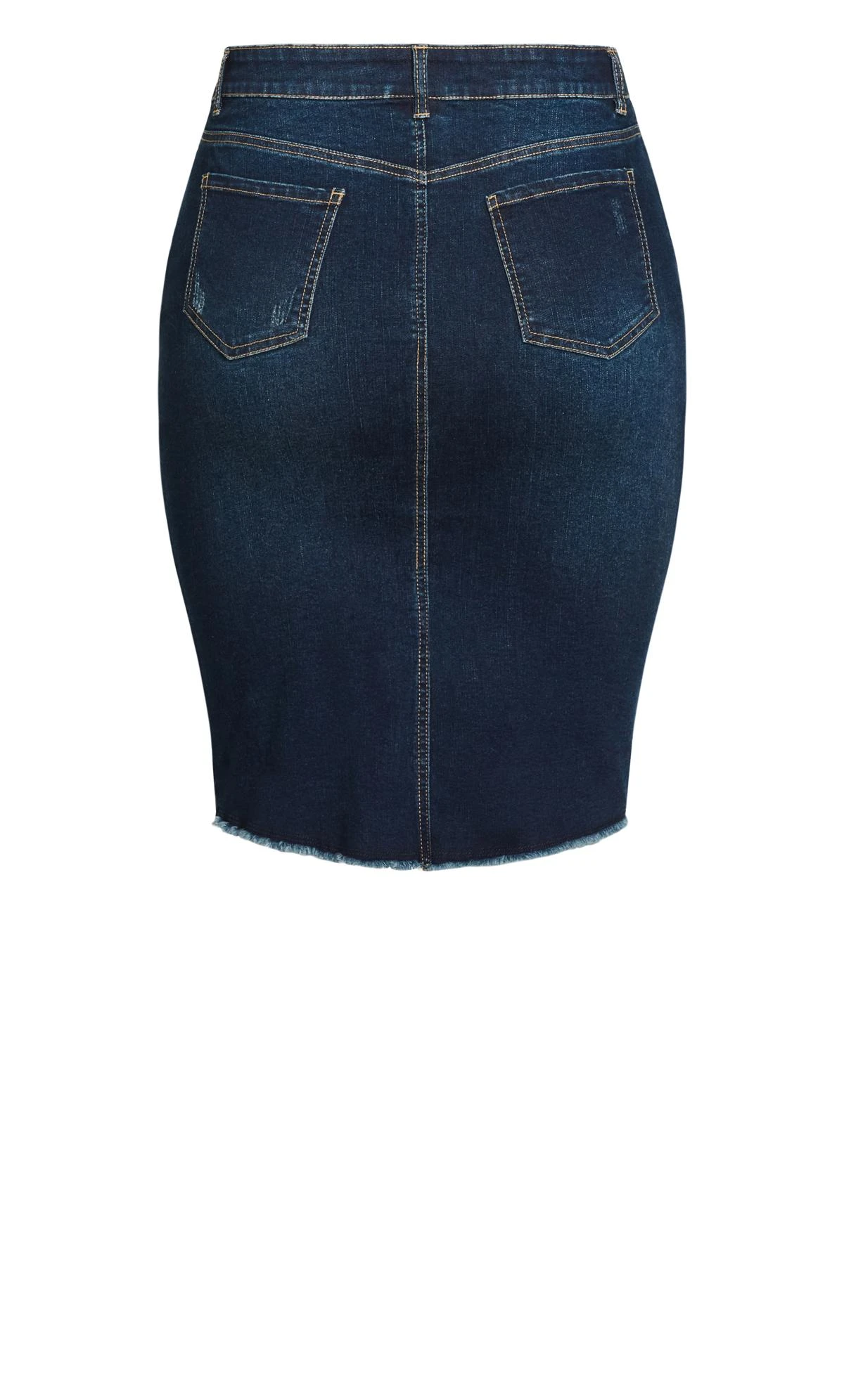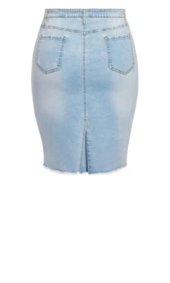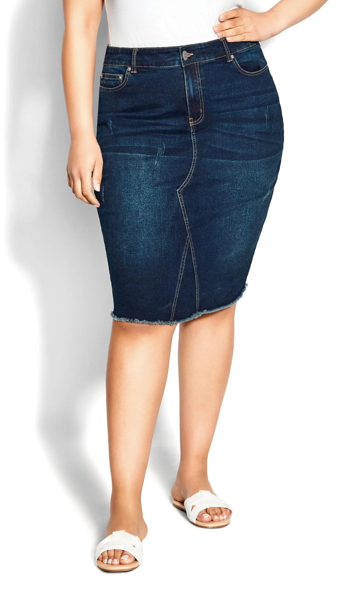 Elevate your denim collection with the Avenue Raw Hem Denim Midi Skirt. The stylish raw hem design and versatile midi length offer a blend of trendiness and comfort. This skirt effortlessly combines fashion and practicality, making it a go-to choice for various outfits. Embrace casual chic with this essential addition to your wardrobe.
