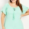 Introducing the Avenue Blue Frill Wrap Hem Short Sleeve T-Shirt, a charming and stylish addition to your wardrobe. With its playful frill wrap hem and short sleeves, this t-shirt adds a touch of flair to your outfit. Pair it with jeans and sneakers for a casual and trendy look, or dress it up with a skirt and sandals for a versatile ensemble that’s perfect for various occasions.
