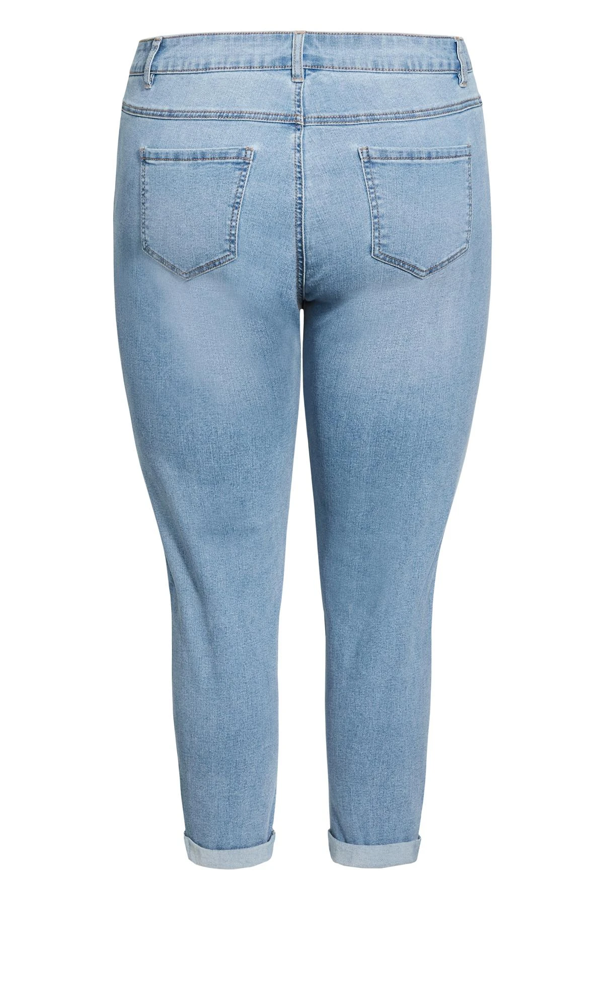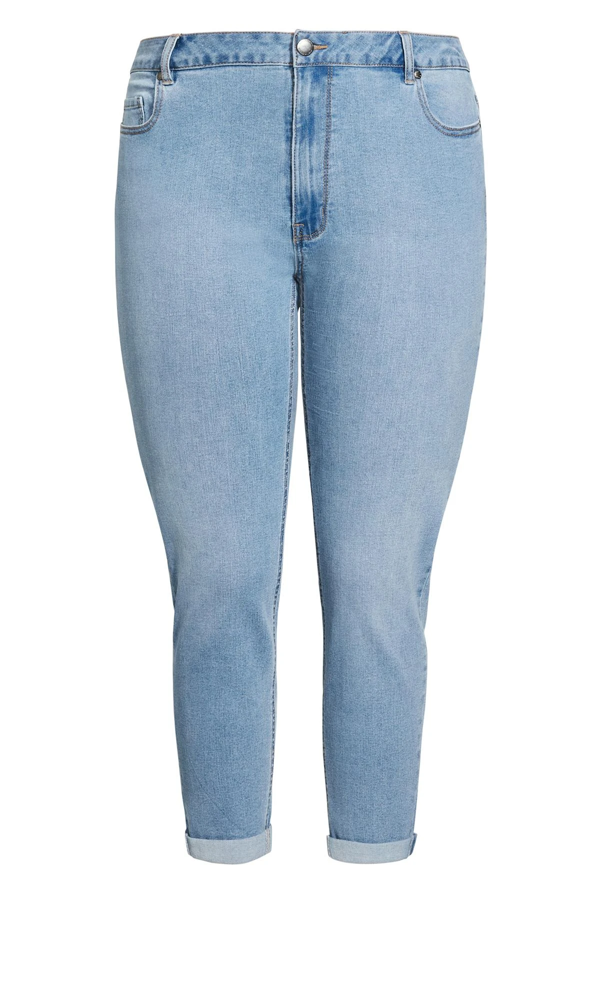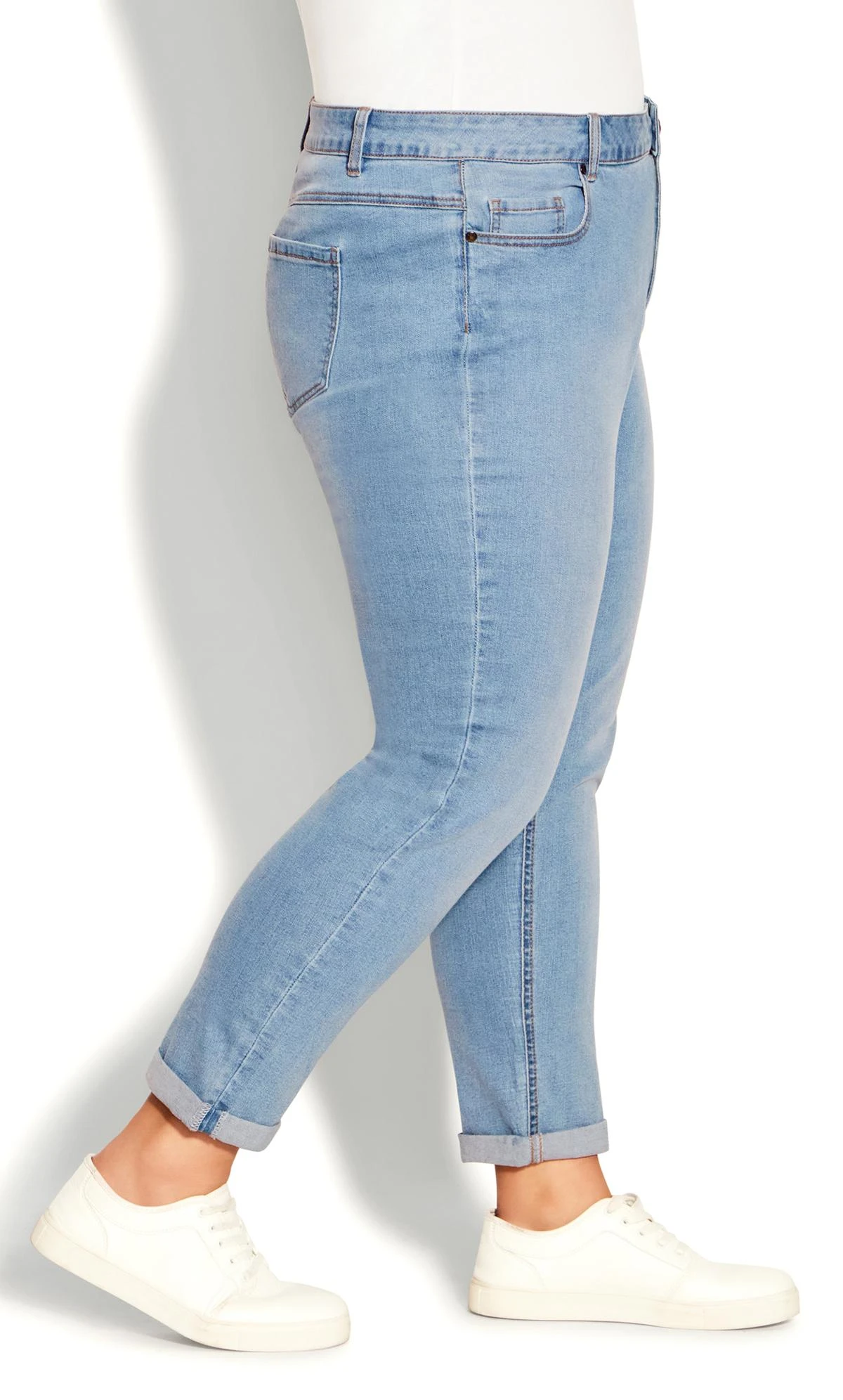 Elevate your denim collection with Avenue’s Blue Stretch Girlfriend Jeans. These jeans seamlessly blend style and comfort, featuring a versatile light blue hue and a flattering fit.