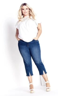 – Cropped length hemline with split centre front