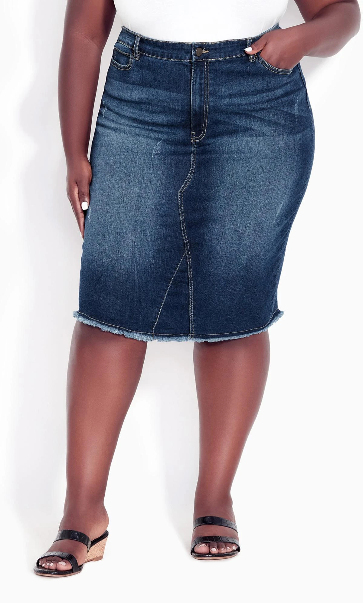 Avenue Blue Mid Wash Stretch Denim Skirt