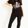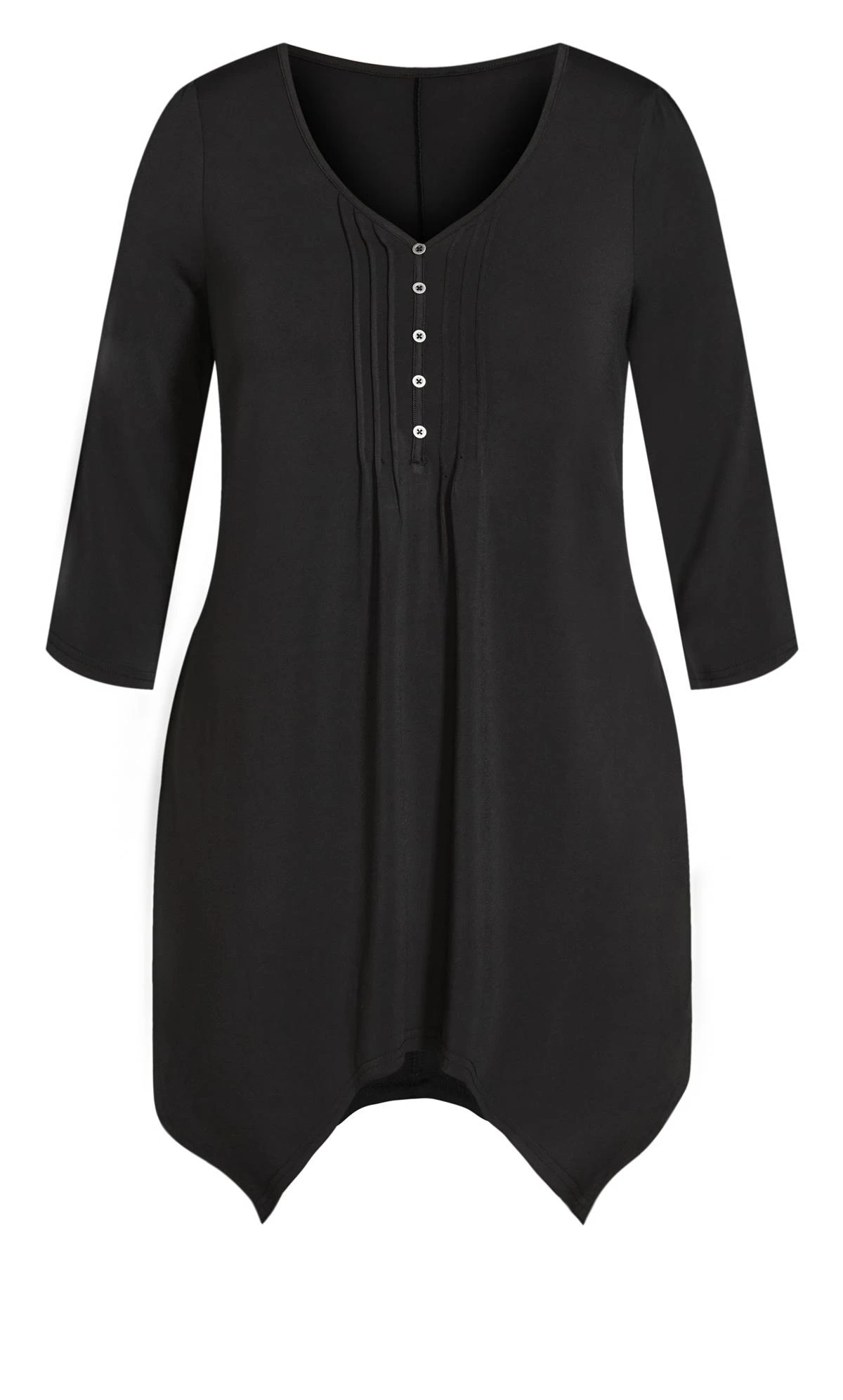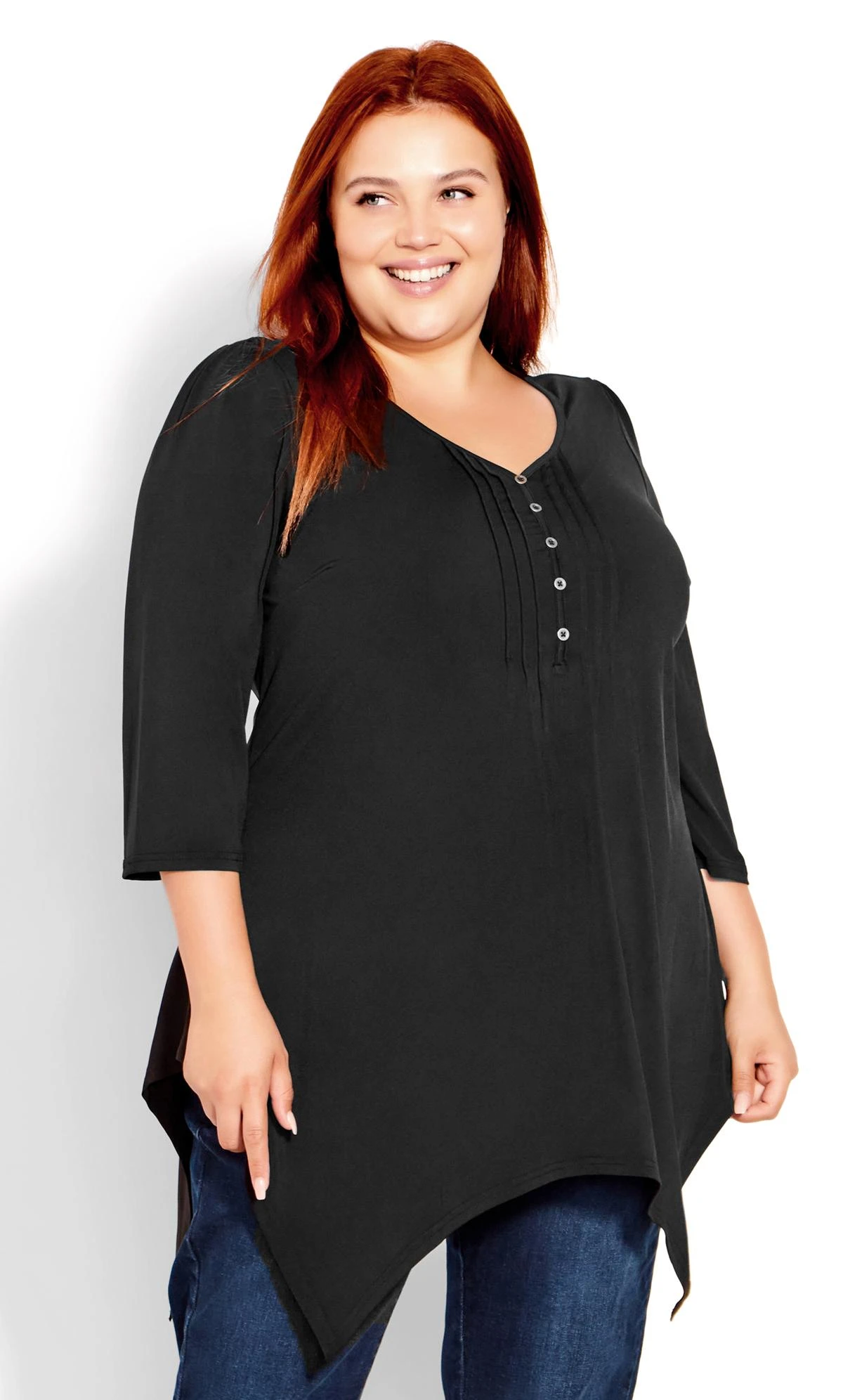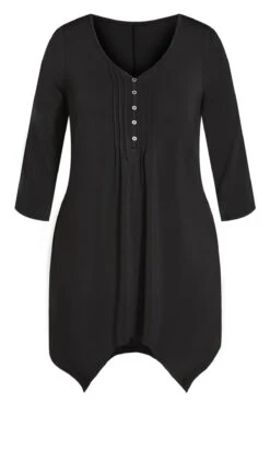 Upgrade your casual style with the Evans Black Hanky Hem Henley T-Shirt. The classic black design is enhanced by a hanky hem, creating a playful and flattering silhouette. Versatile for everyday wear, this T-shirt effortlessly combines comfort and trendiness for a must-have addition to your wardrobe.