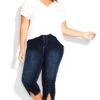 Introduce an extra cool touch to your ensemble with a blue crew-neck sweater and faux Suede ankle boots.