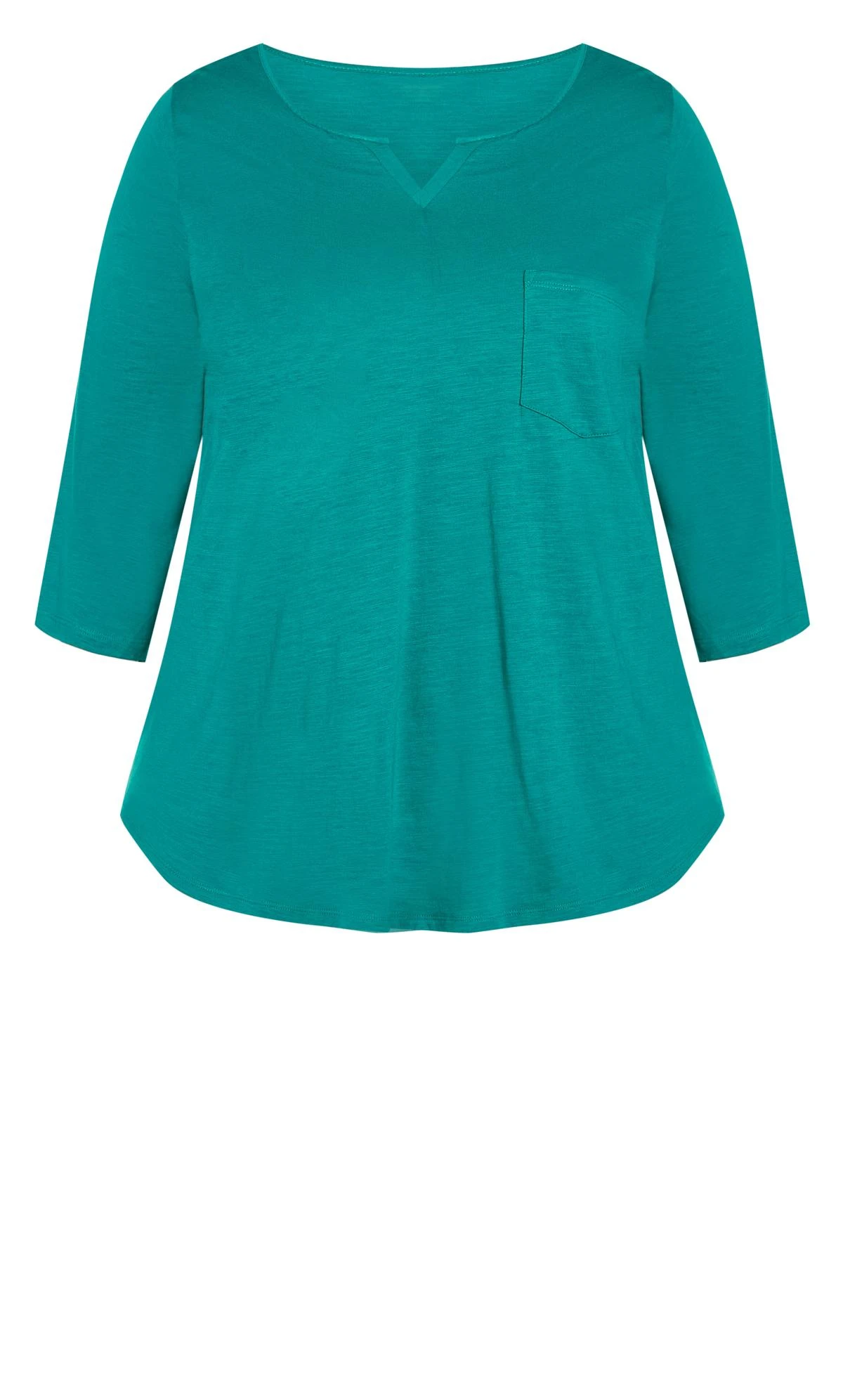 – Notched V-neckline