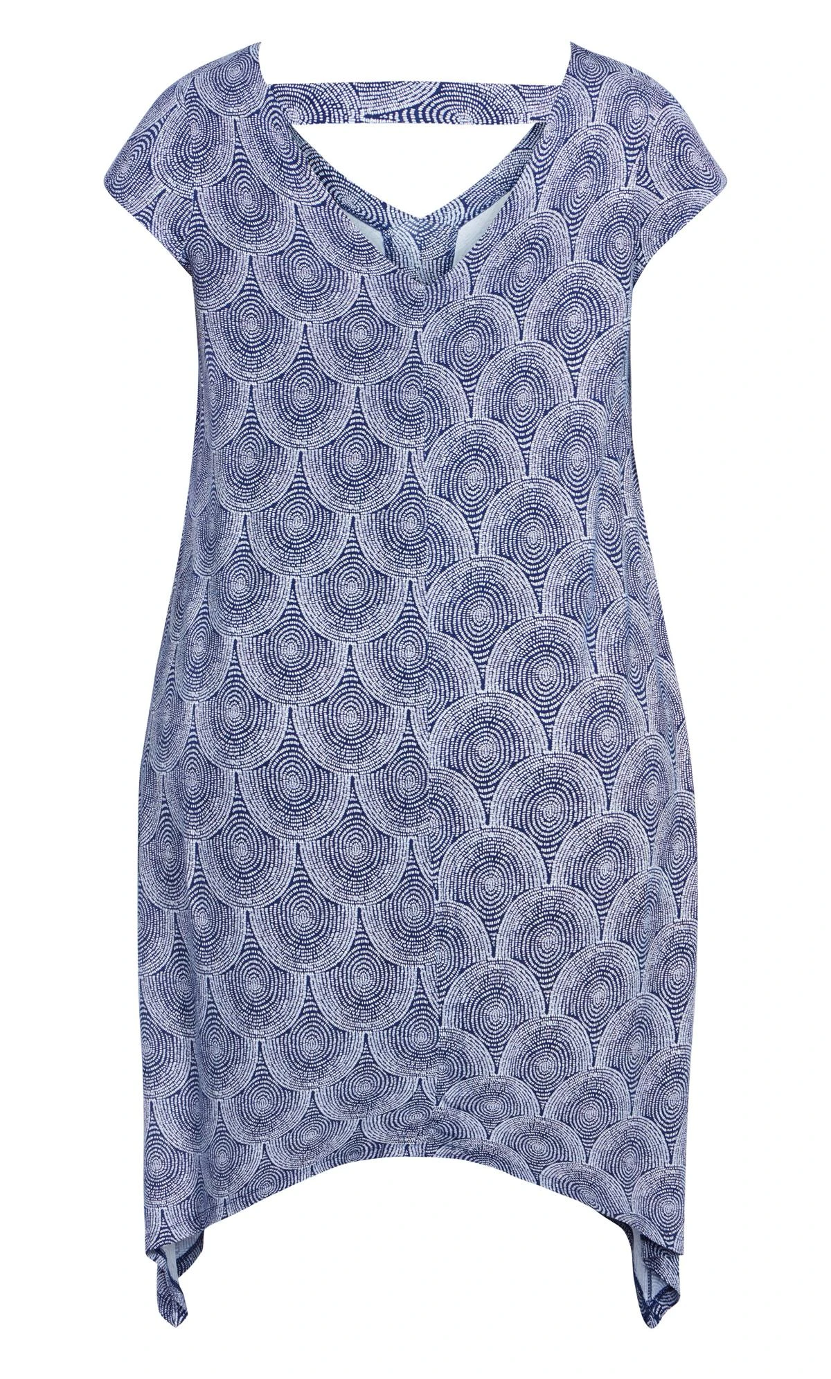 Step into style with the Avenue Navy Blue Circle Print T-Shirt Dress. Featuring a chic circle print, this dress strikes the perfect balance between comfort and fashion. Wear it with sneakers and a denim jacket for a laid-back look, or dress it up with heels and accessories for a versatile and effortlessly chic outfit.