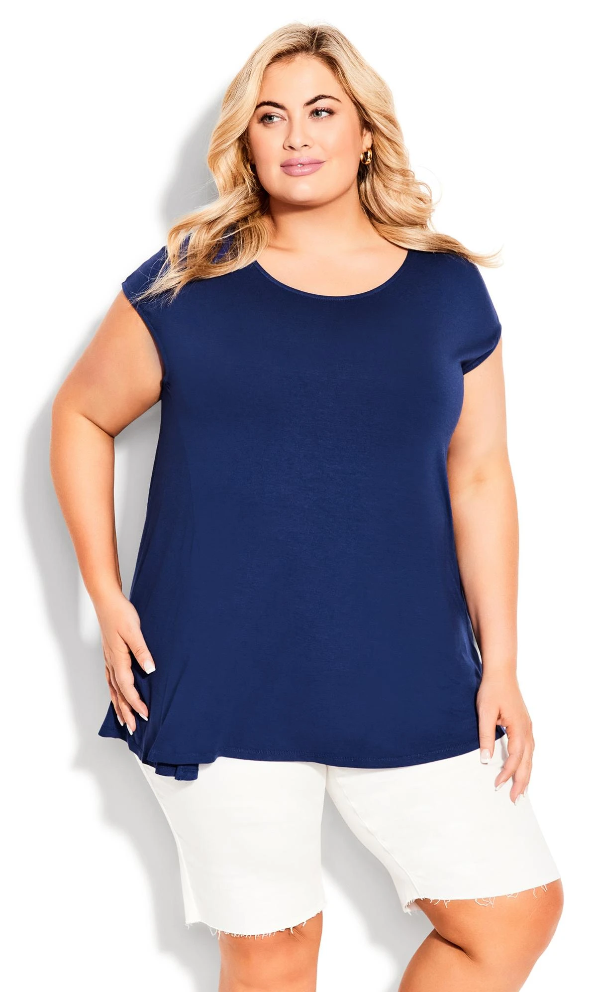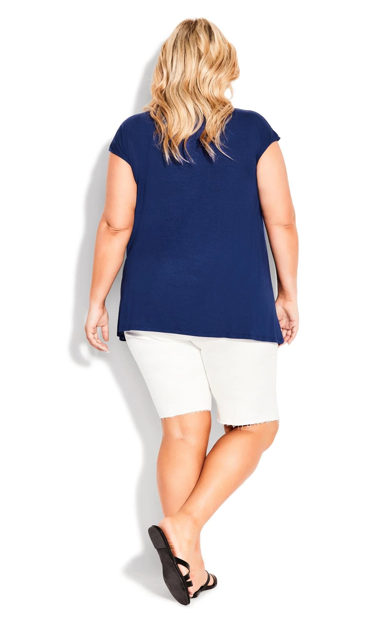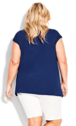 Introducing the Avenue Navy Blue Split Hem Short Sleeve T-Shirt, a versatile and modern addition to your clothing collection. With its distinctive split hem design, this t-shirt adds a touch of sophistication to your outfit. Wear it with jeans and sneakers for a casual daytime look, or elevate your style by pairing it with tailored trousers and loafers for a polished ensemble suitable for various occasions.