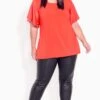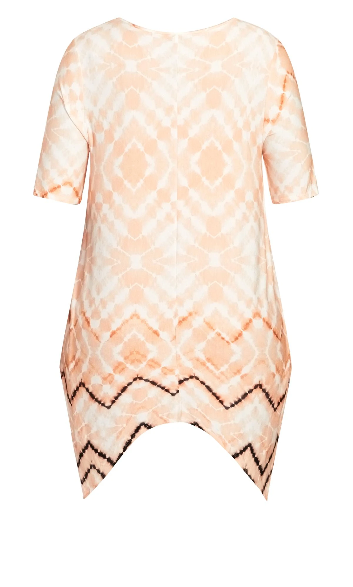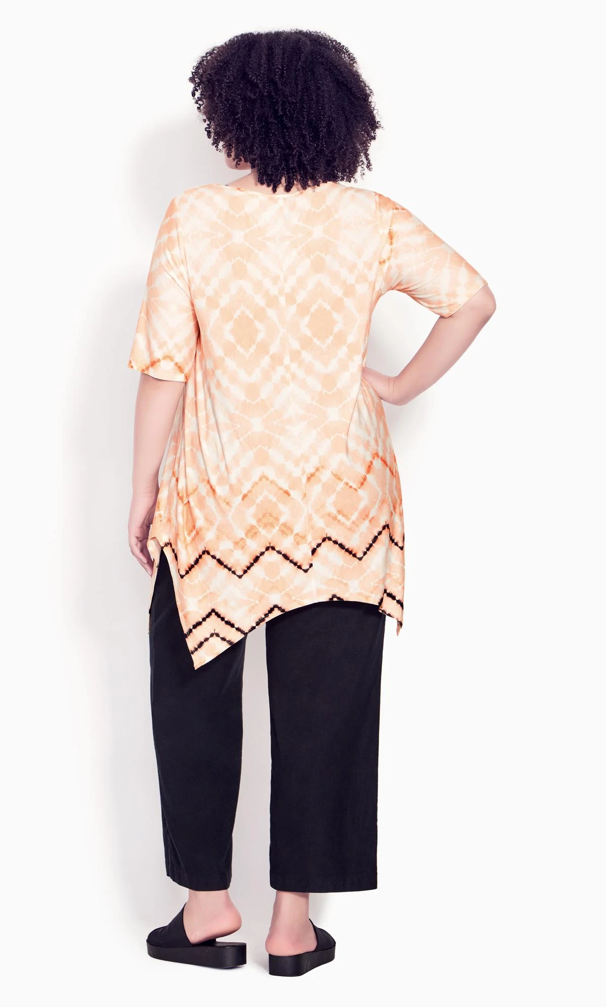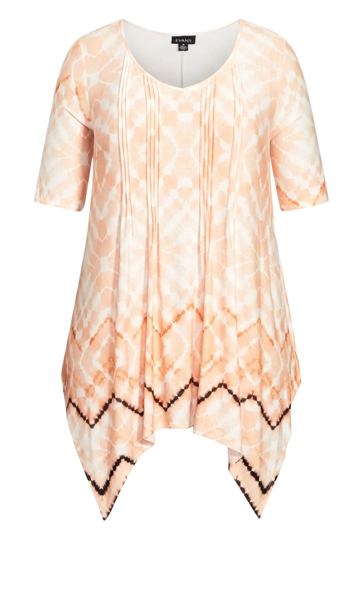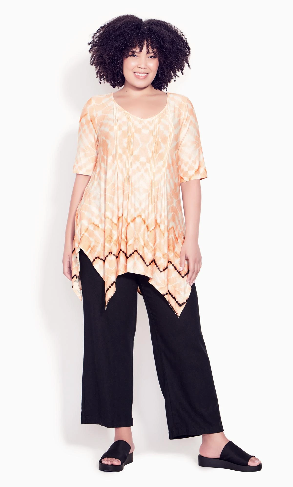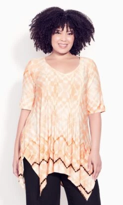 Step into vibrant style with Avenue’s Orange Tie-Dye Pinktuck Hanky Hem Top. This top features a captivating orange tie-dye pattern and elegant pinktuck detailing, adding a touch of bohemian charm to your ensemble. With its unique hanky hem design and versatile appeal, Avenue’s Orange Tie-Dye Pinktuck Hanky Hem Top offers a fashionable statement suitable for various occasions.