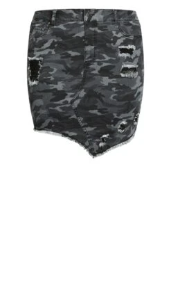 Discover the Societie + Camo Print Denim Asymmetric Skirt, a trendy and edgy addition to your wardrobe. With its captivating camo print and unique asymmetric design, this skirt offers a modern twist on denim. Pair it with a simple white tee and sneakers for a casual yet fashionable look, or dress it up with a black blouse and ankle boots for a stylish ensemble perfect for various occasions, from daytime outings to evenings out.