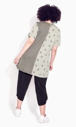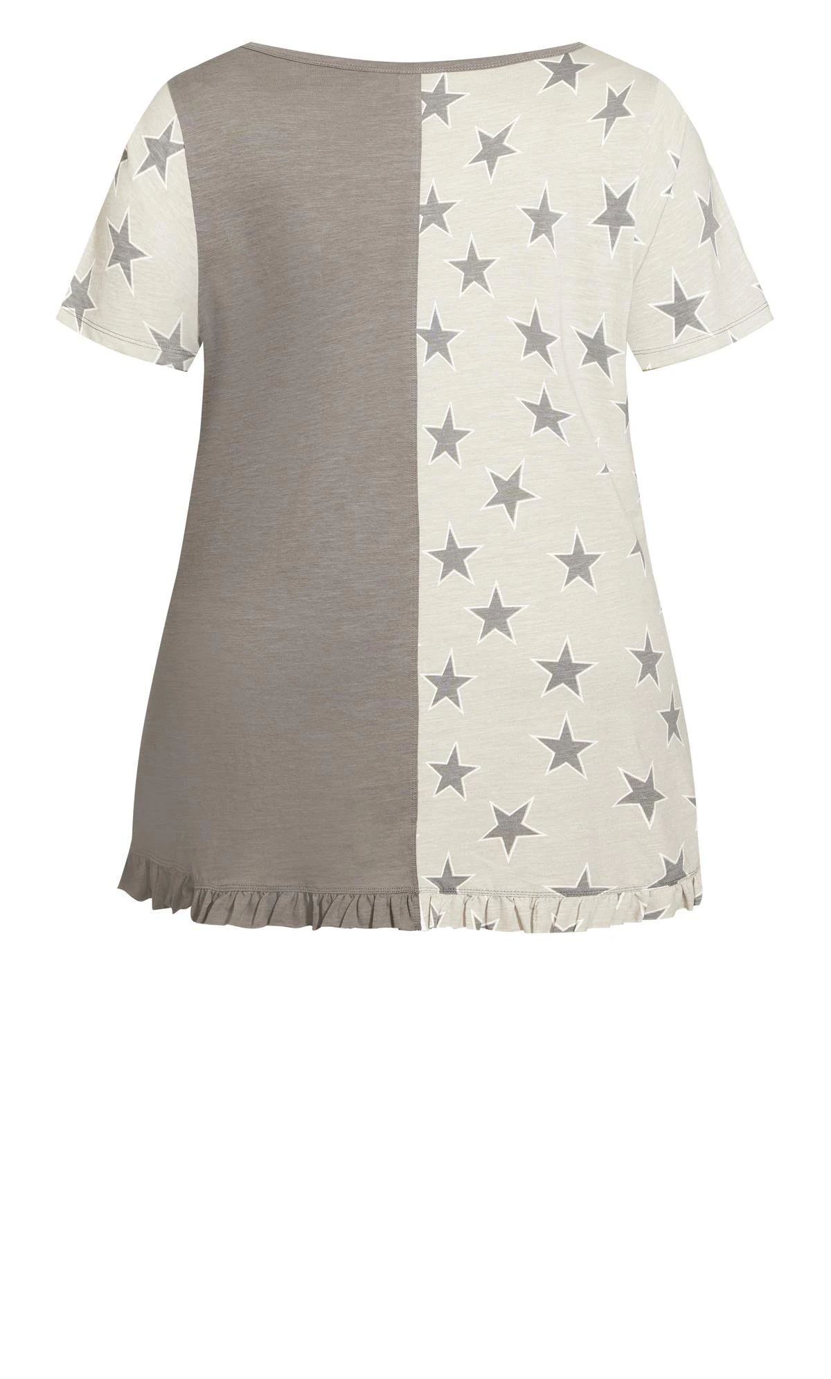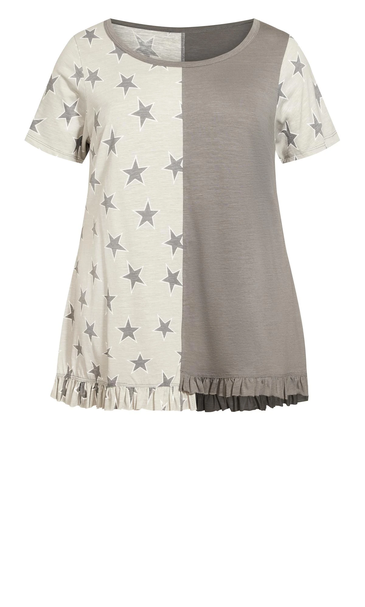 Elevate your everyday look with the Zim & Zoe Grey Star Print Frill Hem T-Shirt. The charming star print and delicate frill hem effortlessly combine style and playfulness in this versatile piece. Whether you’re going for a relaxed outing or a casual meet-up, this t-shirt adds a touch of whimsy to your wardrobe.