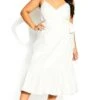 – Short faux wrap split hemline