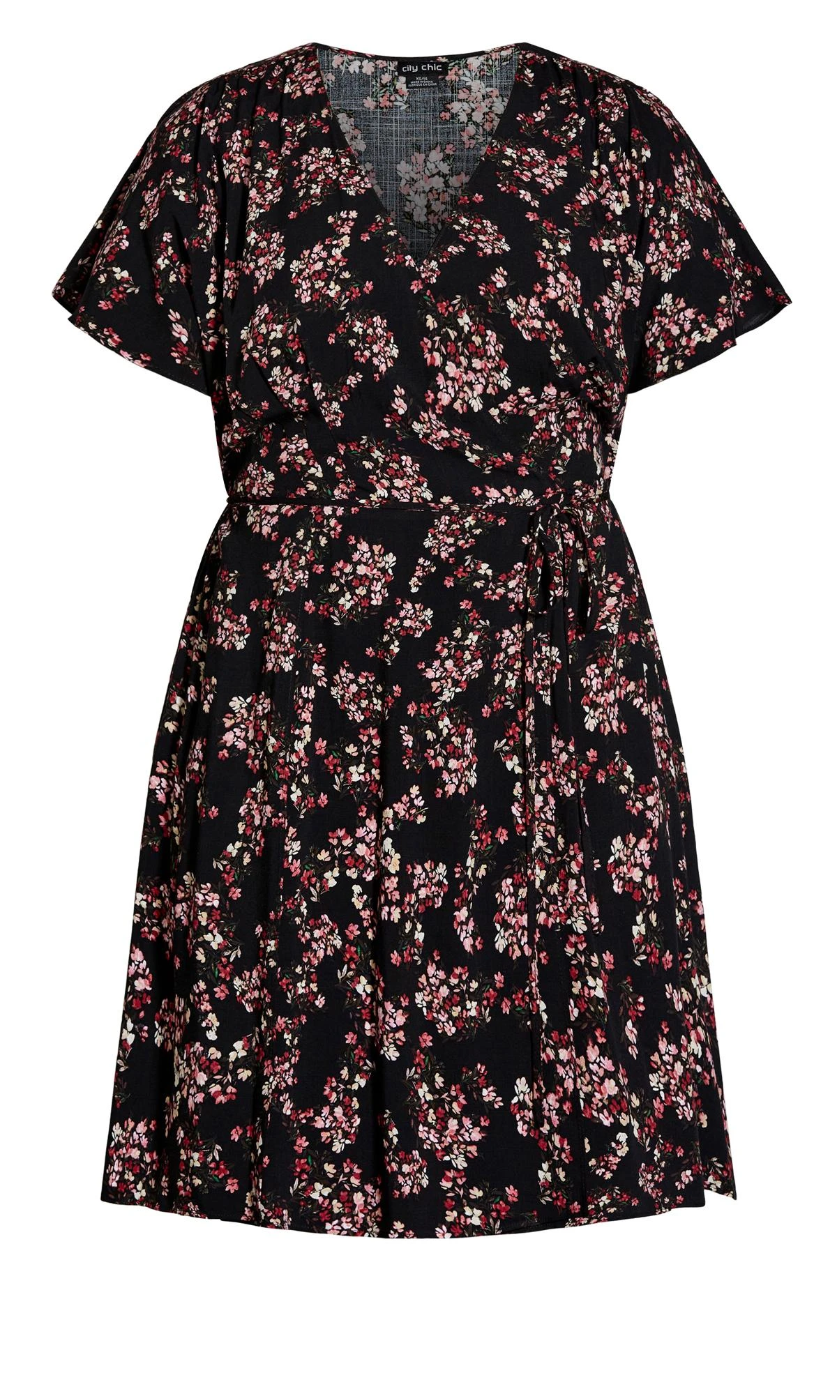 Discover timeless elegance in the City Chic Black Ditsy Floral Wrap Dress. Its delicate ditsy floral pattern dances across the fabric, while the wrap design flatters your silhouette effortlessly. Perfect for any occasion, this dress seamlessly blends sophistication with a touch of romance. Embrace the charm of city chic and bloom with grace in this exquisite wrap dress.