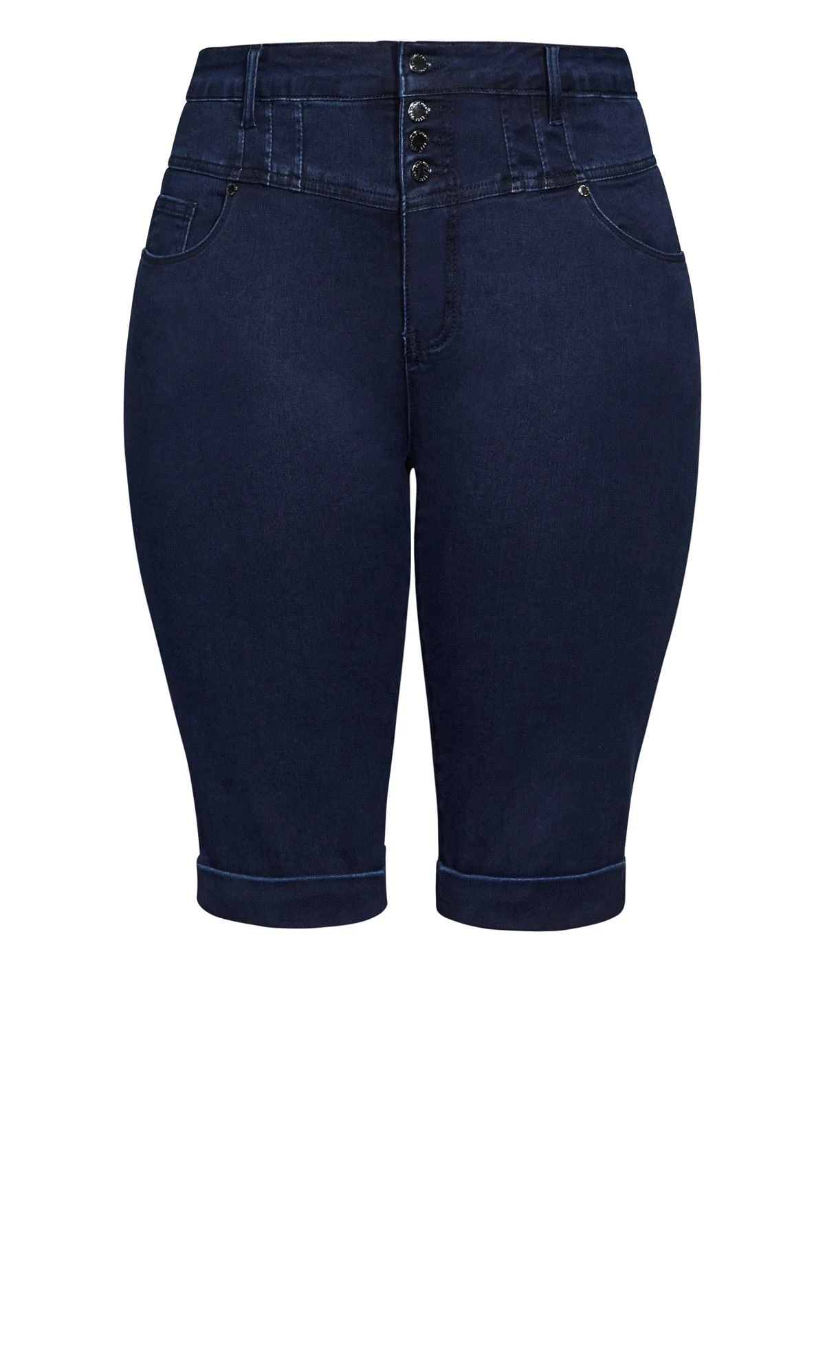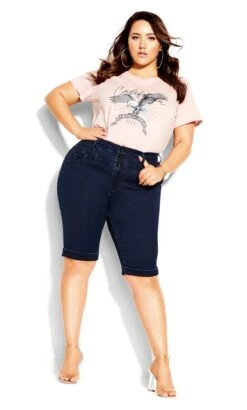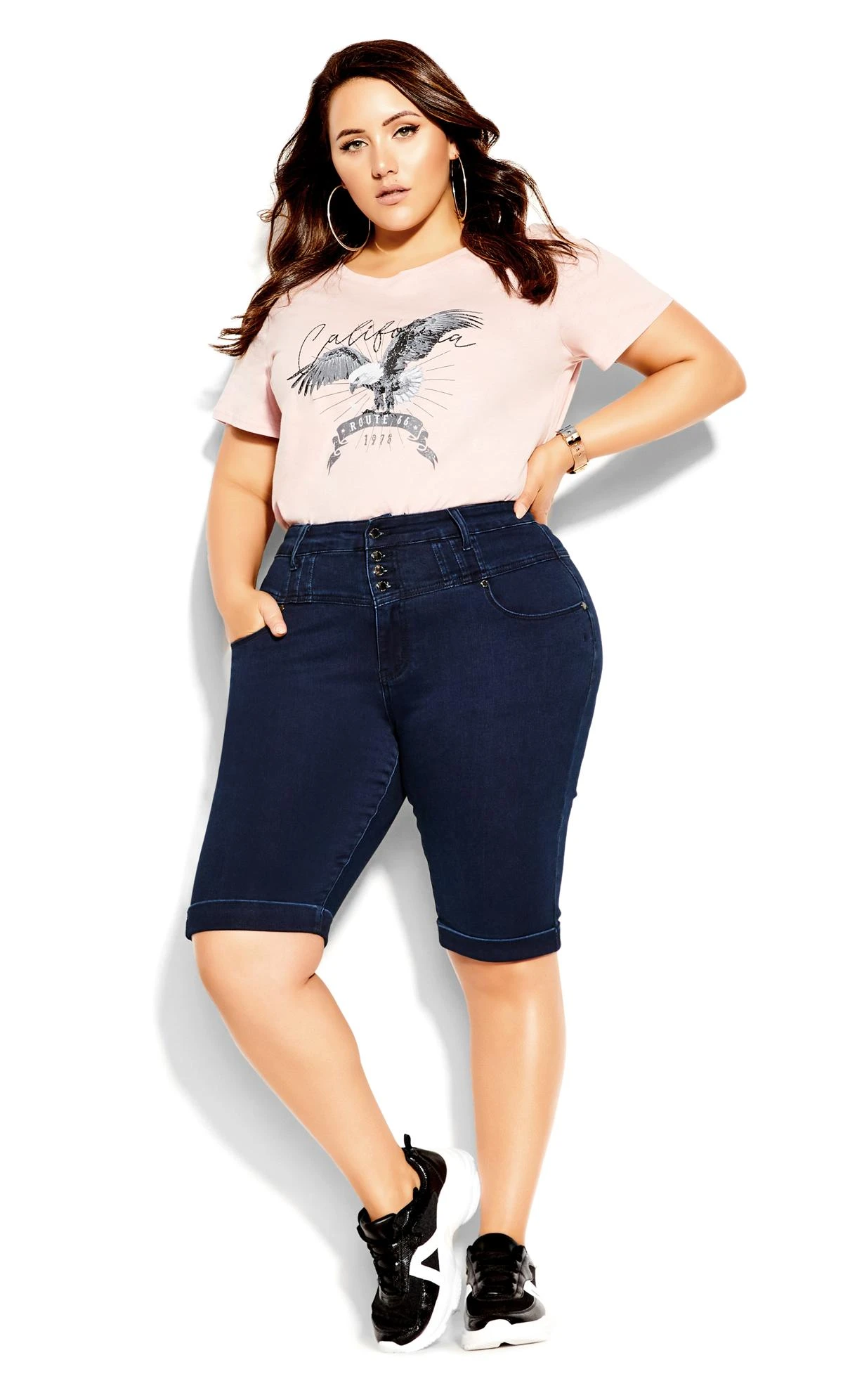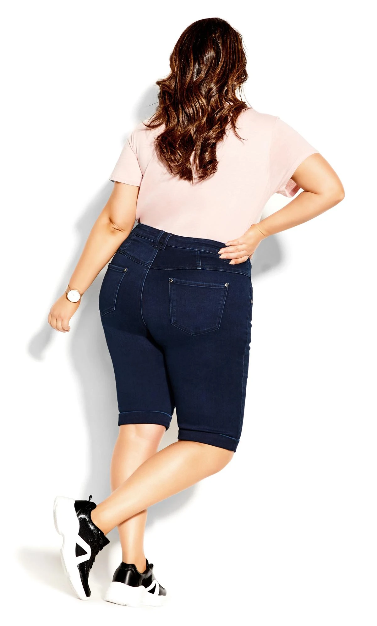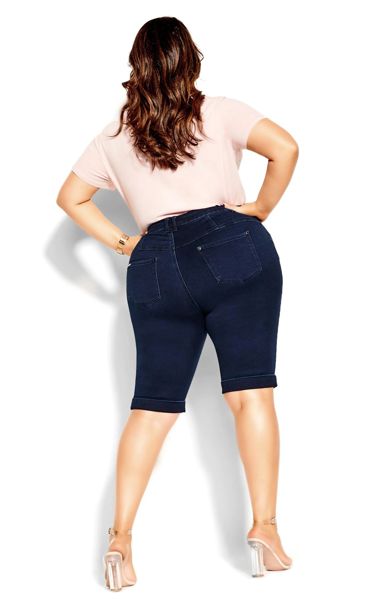 Elevate your casual look with the City Chic Black High Waisted Long Denim Shorts. These versatile shorts feature a high-waisted design and a sleek black wash, blending comfort with style seamlessly. Ideal for warmer days, pair them with a tucked-in blouse or a casual t-shirt for a chic and relaxed outfit that effortlessly captures attention while keeping you comfortable and fashionable.