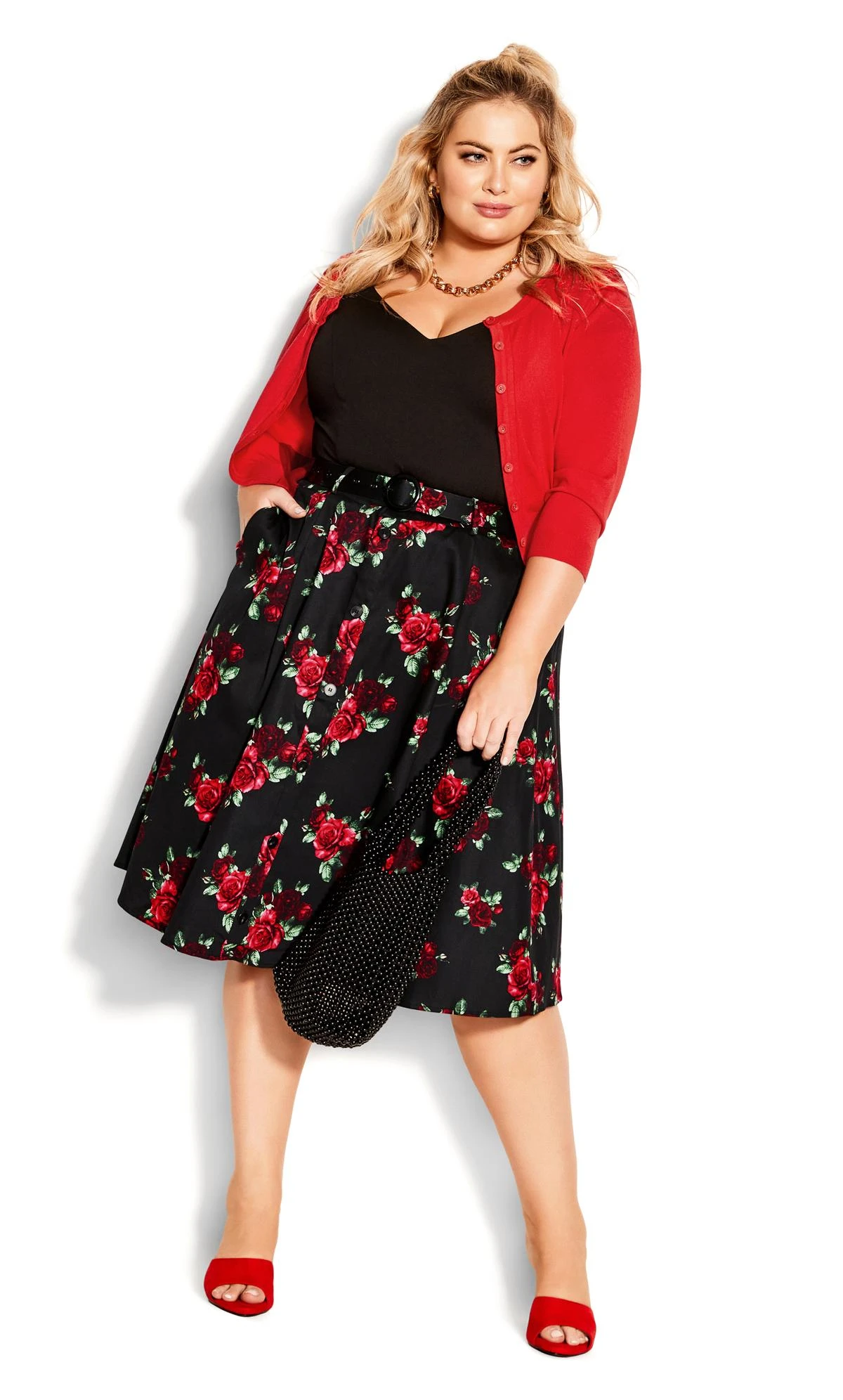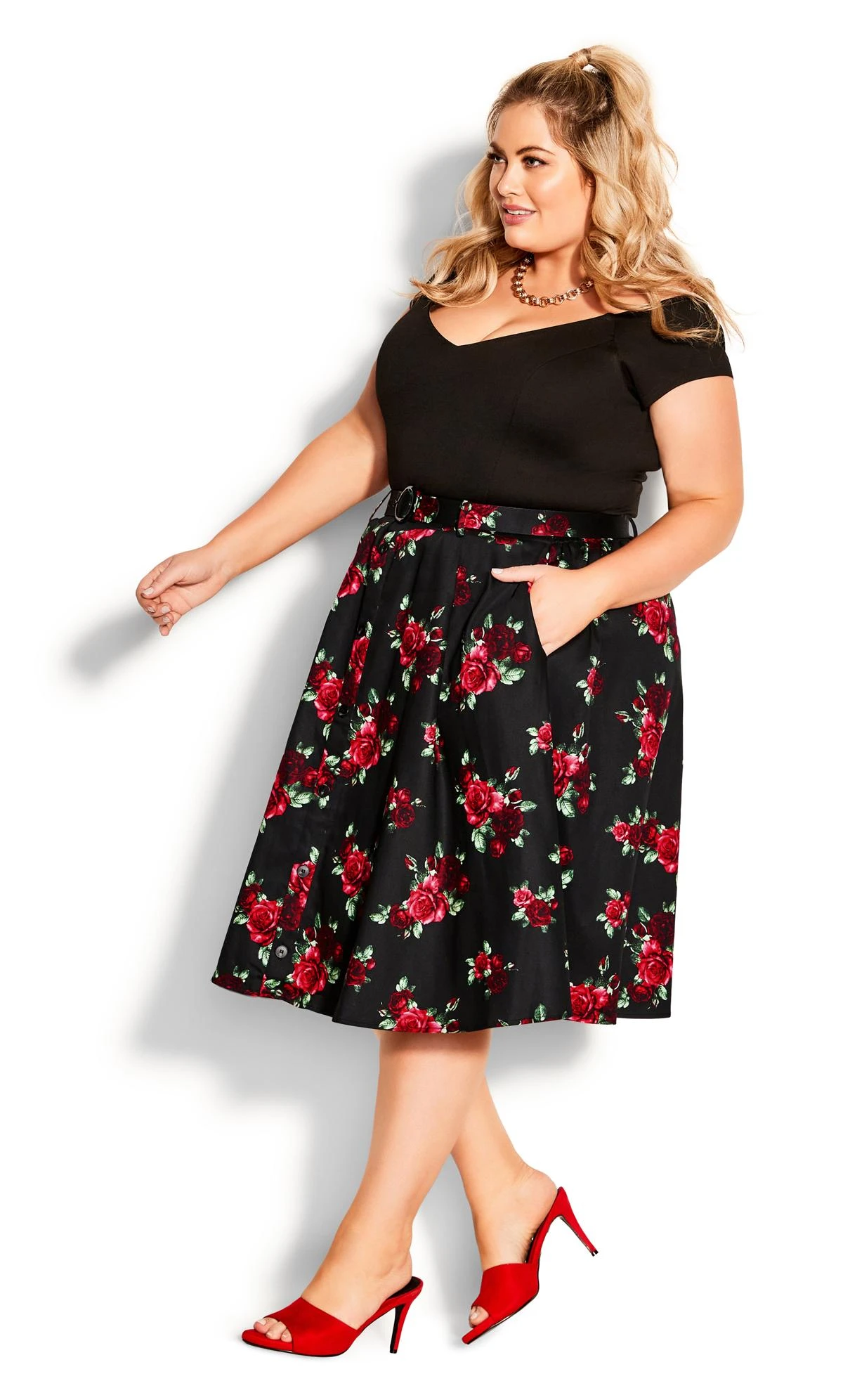 Capture elegance with the City Chic Black Rose Print Skirt. Perfect for special occasions, the black hue exudes sophistication. Elevate your style with this City Chic skirt that effortlessly merges fashion and grace, making you the center of attention at any event.