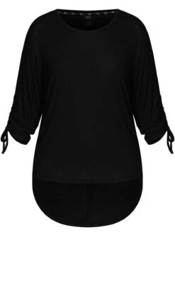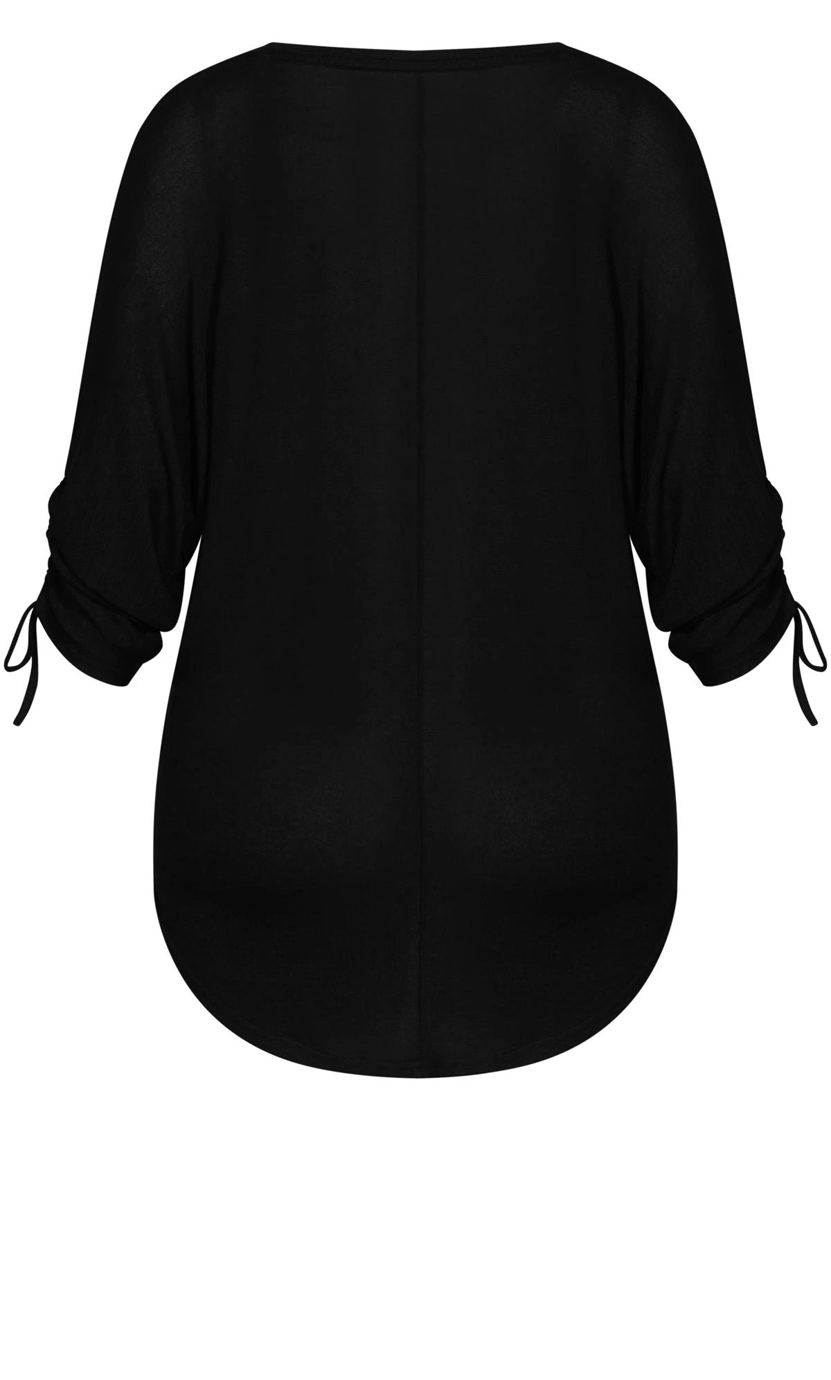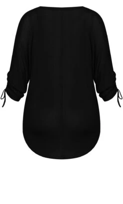 Elevate your casual wardrobe with the City Chic Black Ruched Tie Sleeve Top. This top strikes the perfect balance between sophistication and flair, featuring a classic black design complemented by ruched tie sleeves that add a touch of elegance. Whether you’re dressing up for a night out or adding a chic twist to your everyday style.