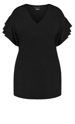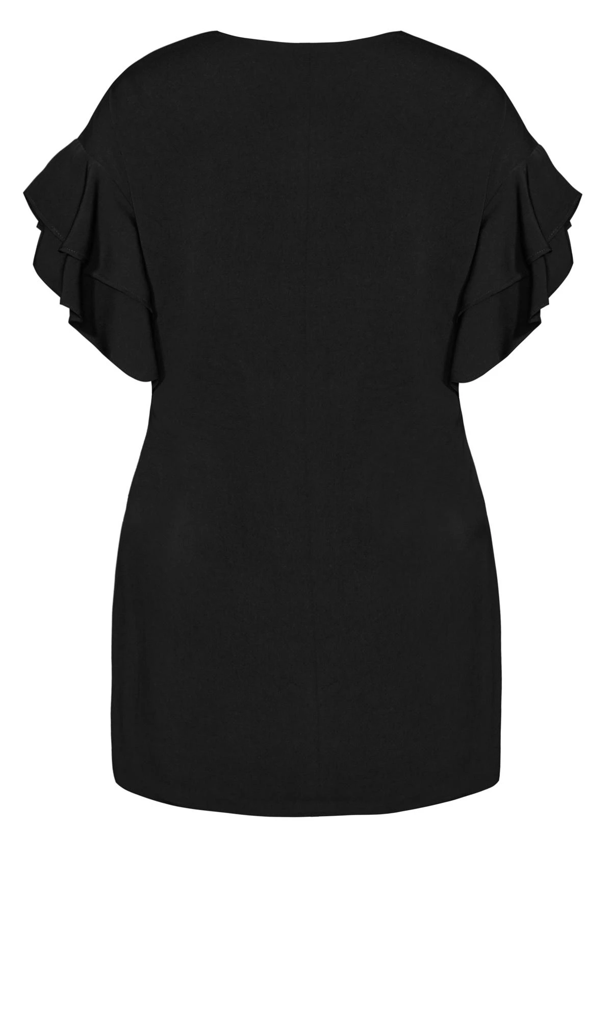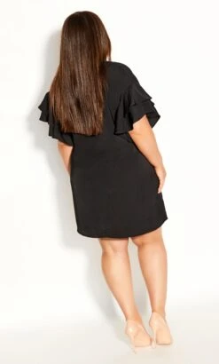 Elevate your style with the Party City Chic Black Ruffle Sleeve Mini Dress. Perfect for any occasion, this chic and trendy dress features captivating ruffle sleeves that add a touch of flair to your look. Embrace sophistication and confidence as you flaunt this versatile black mini dress, designed to make you stand out in every celebration.