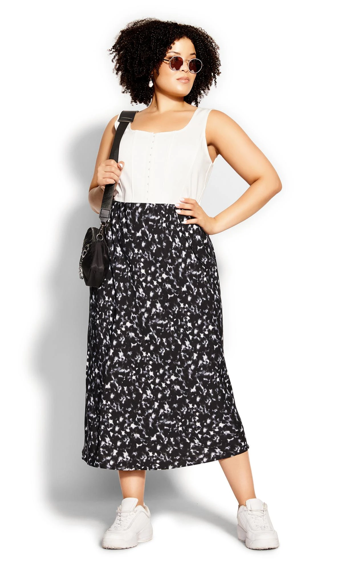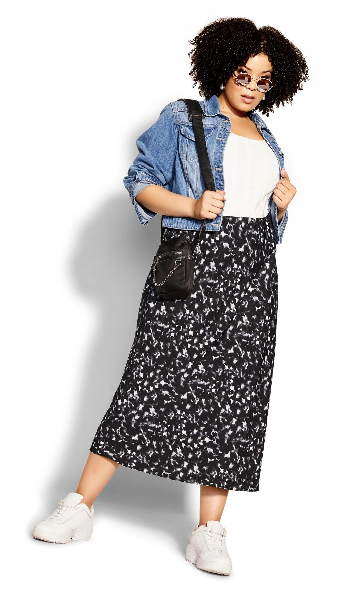 Discover the epitome of modern elegance with the City Chic Black Tortoise Shell Print Midi Skirt. The striking tortoise shell print adds a unique touch to this midi skirt, creating a balance of boldness and sophistication. With its versatile black base, this skirt becomes a statement piece for both casual and refined ensembles, promising a look that’s as versatile as it is chic.