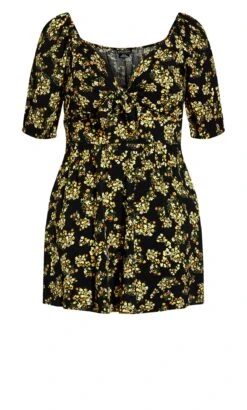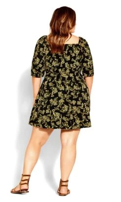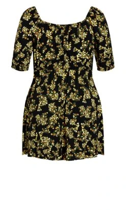 City Chic Black & Yellow Ditsy Skater Dress
