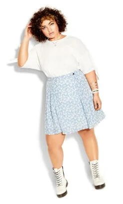 Embrace a blend of elegance and vibrancy with the City Chic Blue Floral Print Pleated Skirt. It captures the essence of summer with its captivating floral motif, set against a serene blue backdrop. A versatile choice for casual outings – style with a t-shirt and boots or dress up with heels.