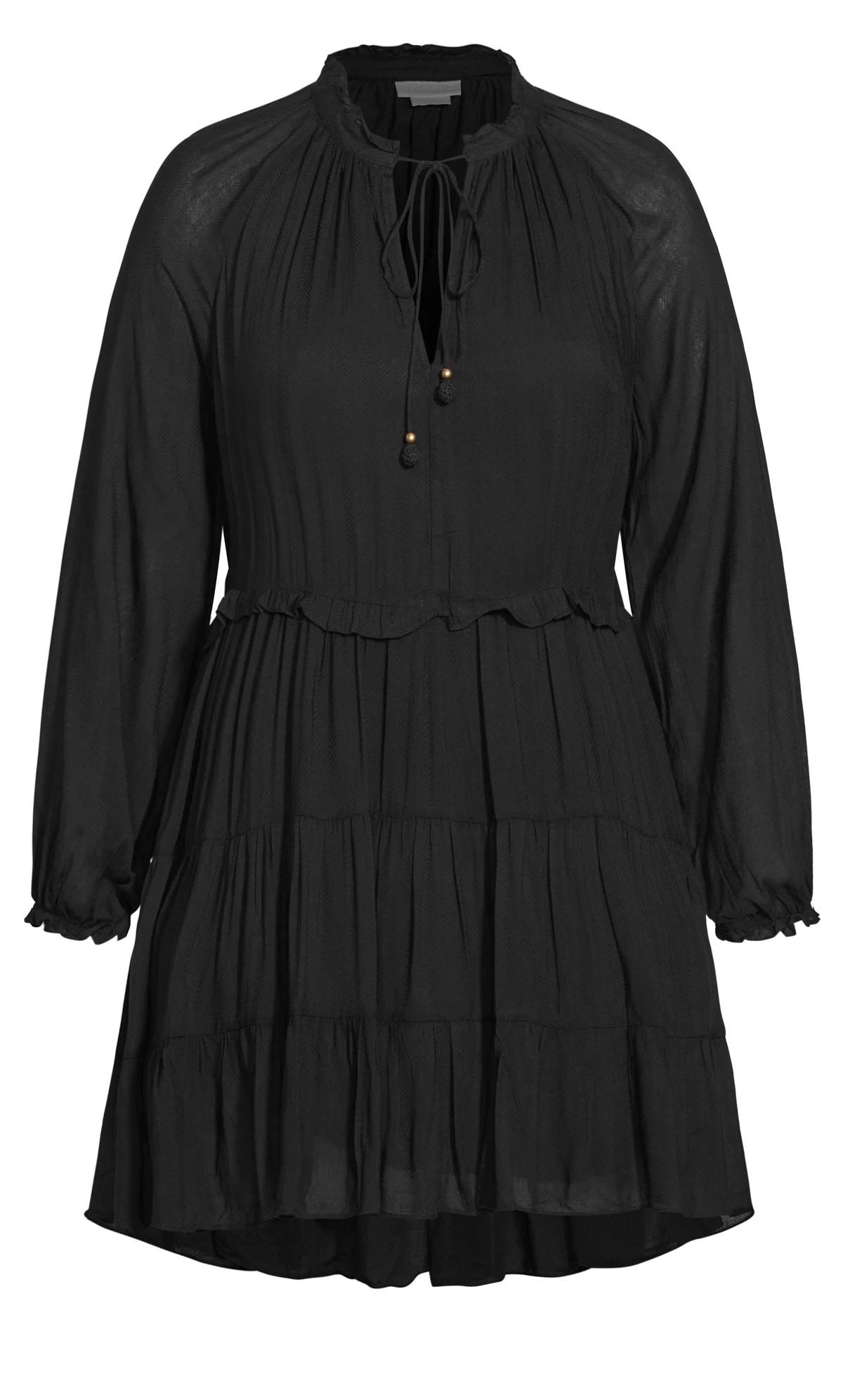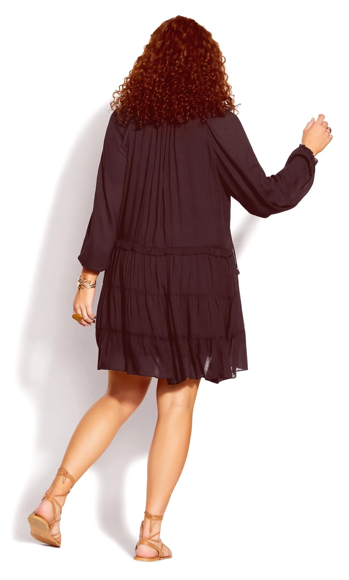 Capture boho beauty with the City Chic Brown Tassel Tiered Mini Dress. Its tiered layers adorned with tassels create an effortlessly chic and free-spirited look, perfect for any casual occasion. Embrace style and comfort in one enchanting package.