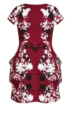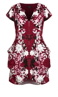 City Chic Burgundy Red Floral Zip Through Mini Dress