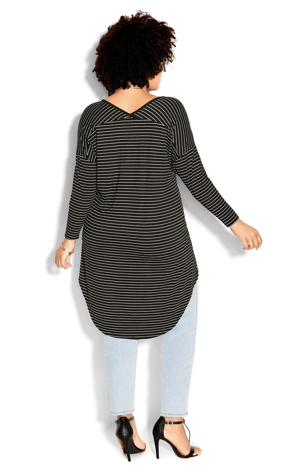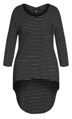 Elevate your casual style with the CCX Black Stripe Print Dipped Hem Top, a dynamic fusion of comfort and fashion. The distinctive stripe print adds a modern edge, while the dipped hem design offers a unique silhouette. Pair it with skinny jeans and ankle boots for a trendy and relaxed outfit that effortlessly takes you from day to night.