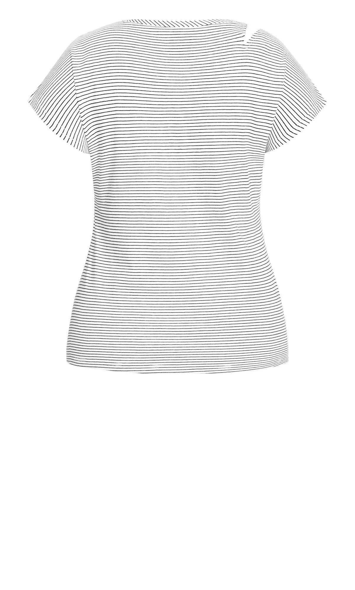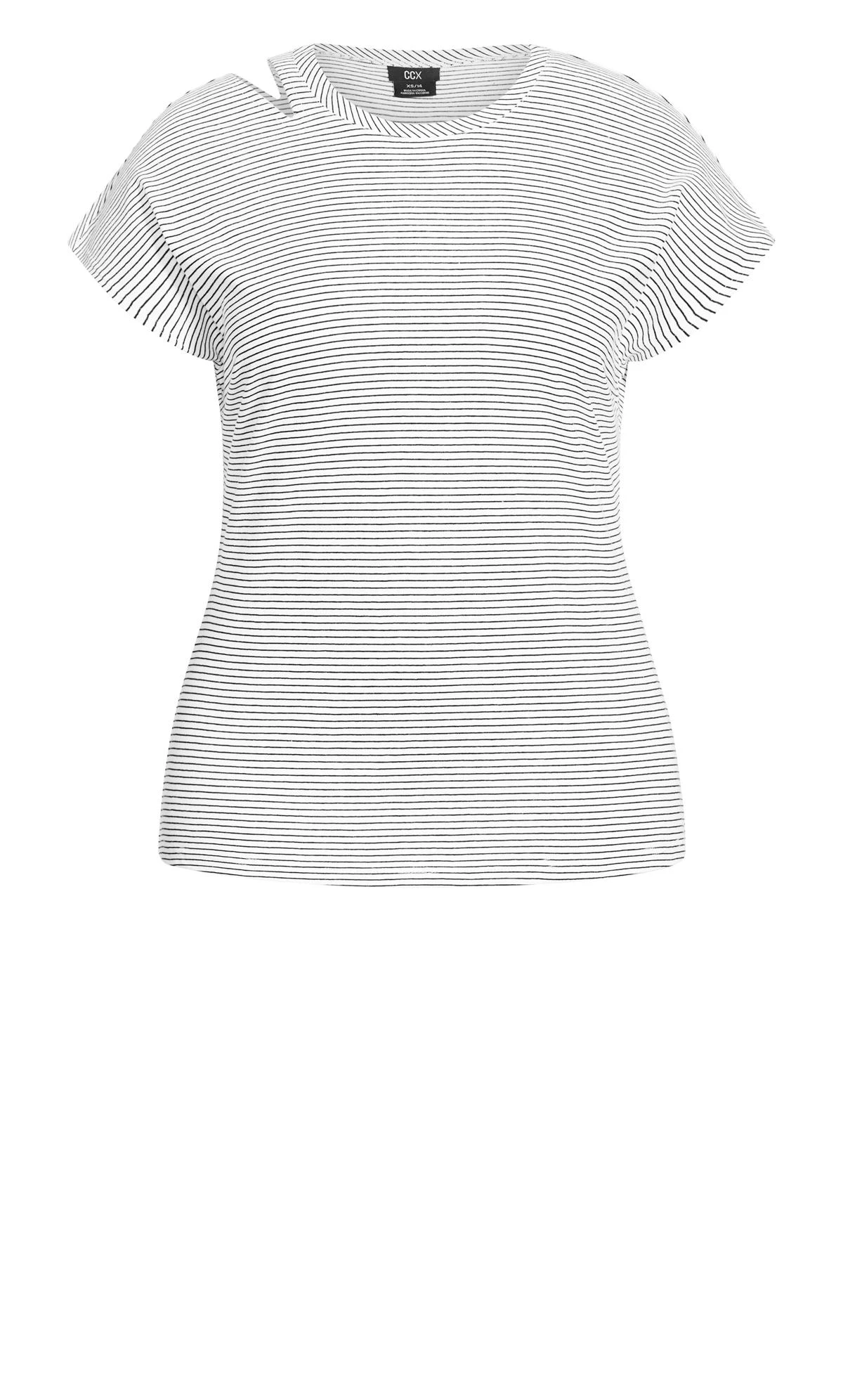 Experience modern style and comfort with the CCX Ivory White & Black Stripe Cold Shoulder T-Shirt. This T-shirt effortlessly combines chic design with relaxed vibes, featuring cold shoulder cutouts and a timeless ivory white and black stripe pattern. Perfect for casual outings or hanging out with friends, this CCX T-shirt adds a fashionable twist to your look, ensuring you exude confidence and laid-back charm in every stride.
