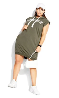Embrace urban chic with the CCX Khaki Green ‘Brklyn’ Slogan Hoodie Dress, a fusion of comfort and street style. Featuring the trendy ‘Brklyn’ slogan, this hoodie dress adds a touch of attitude to your look. Wear it with sneakers and a crossbody bag for a cool and relaxed outfit that captures the essence of city life.