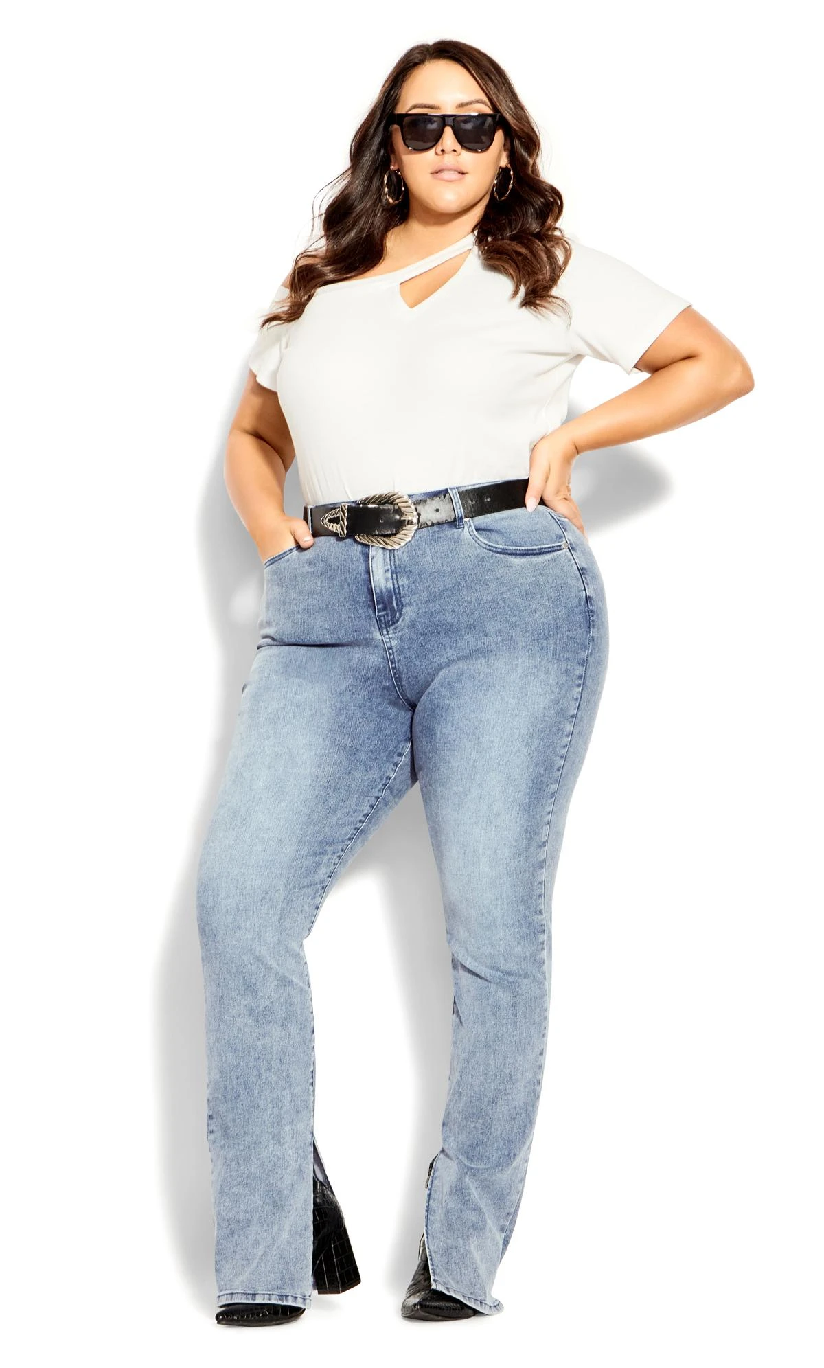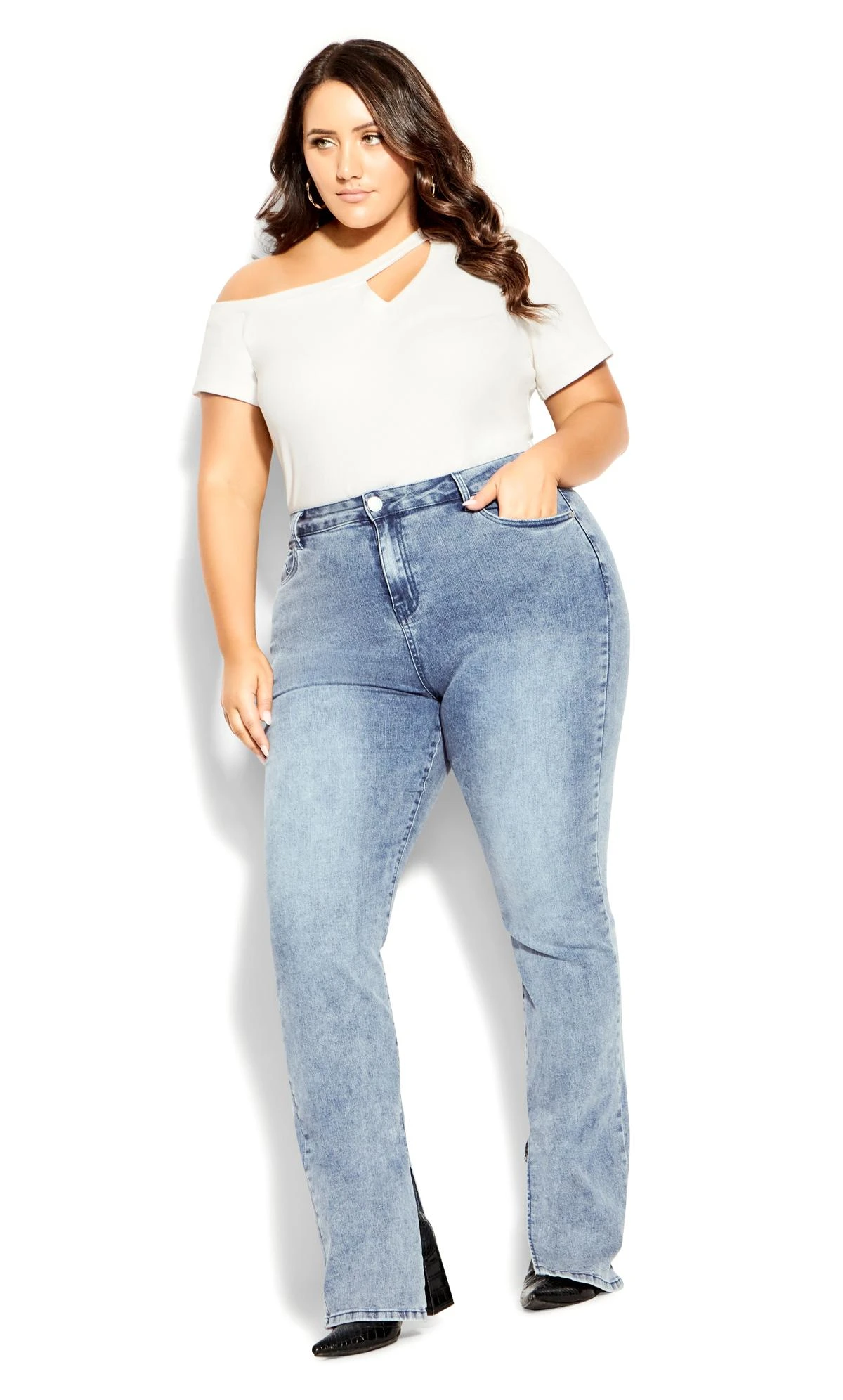 – Straight leg with side split detailing