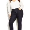 This skinny cut jean works perfectly with a pair of patent pumps and a draping shirt for the office.