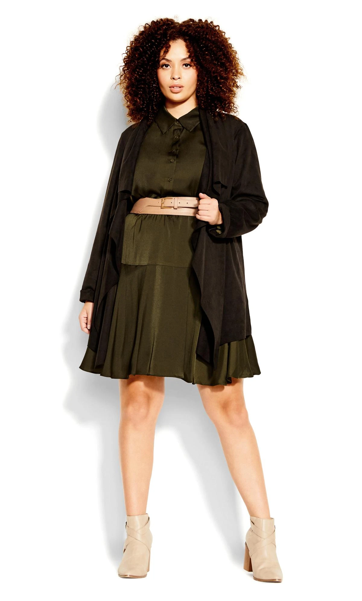 Discover the City Chic Khaki Green Satin Tiered Mini Dress, a trendy and chic addition to your collection. With its stylish khaki green color and delicate satin fabric, this mini dress offers a playful and versatile look. Pair it with ankle boots or strappy sandals for a relaxed daytime outfit, or dress it up with heels and statement accessories for a fashionable ensemble suitable for various occasions, from brunches to nights out.