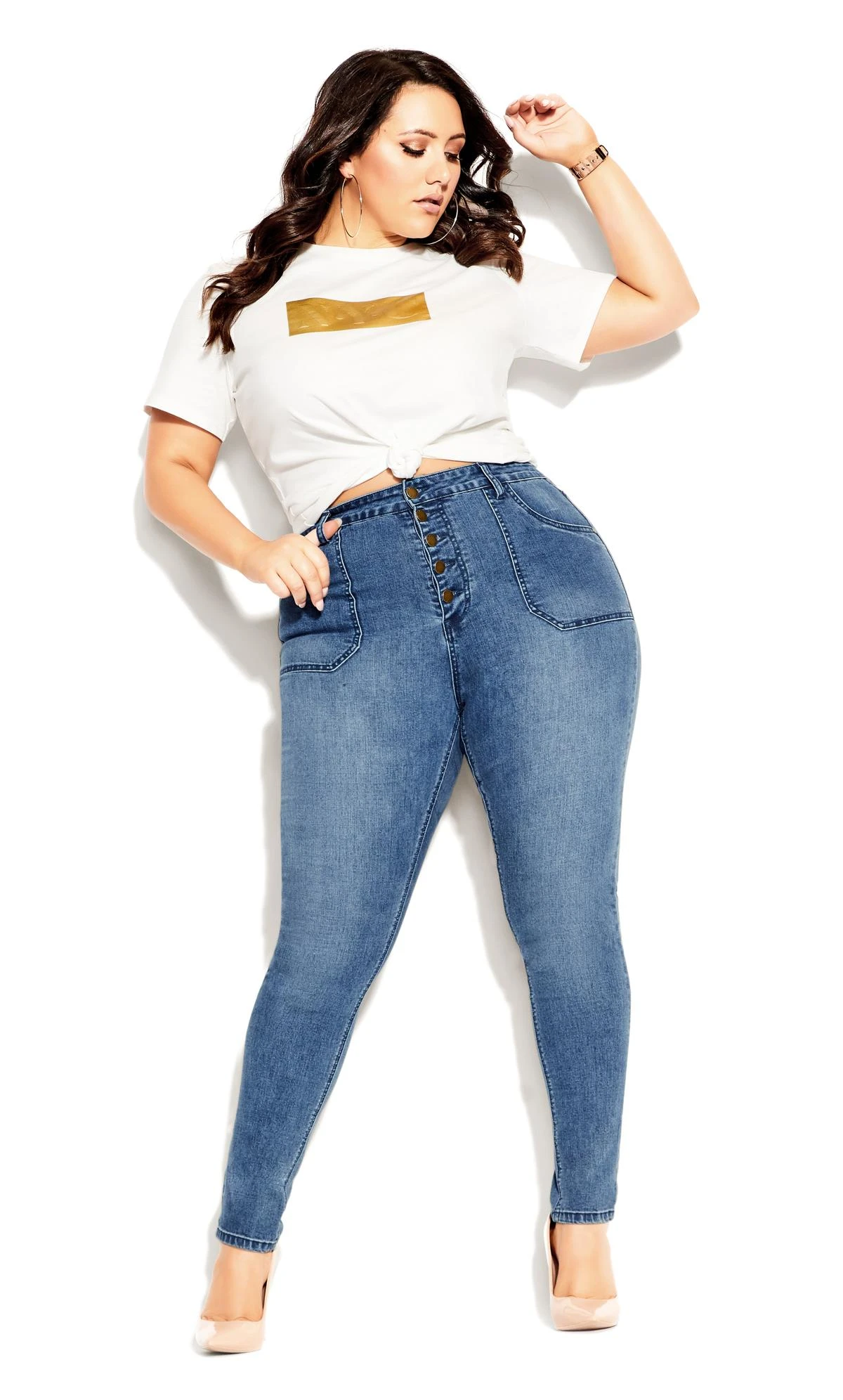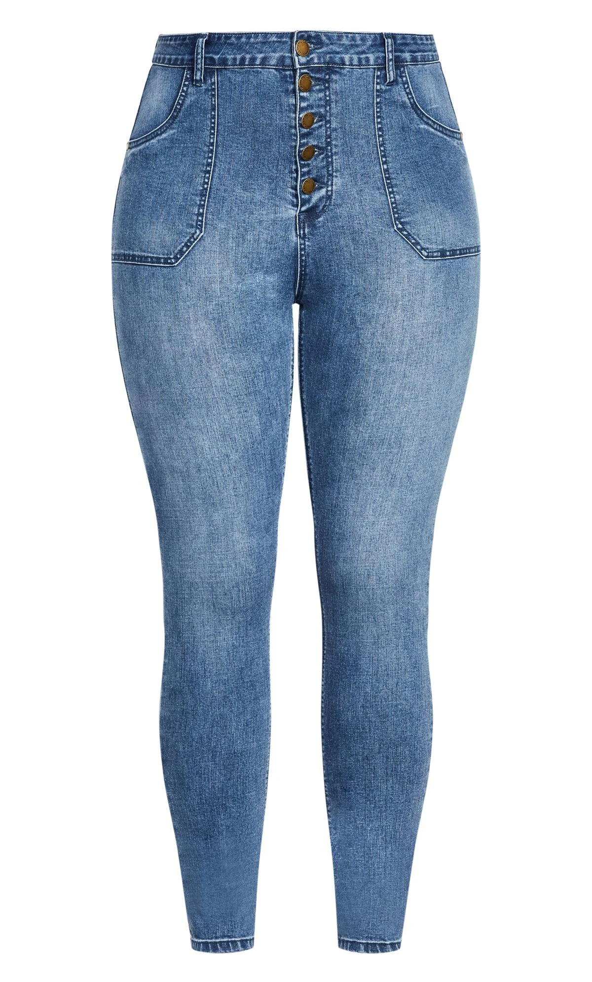 Elevate your denim game with City Chic Mid Blue High Waisted Button Front Skinny Jean. Effortlessly stylish, these jeans feature a flattering high waist and trendy button-front design. The mid-blue hue adds a touch of versatility, making them perfect for casual outings or dressing up. Embrace fashion-forward comfort and confidence with this must-have addition to your wardrobe.