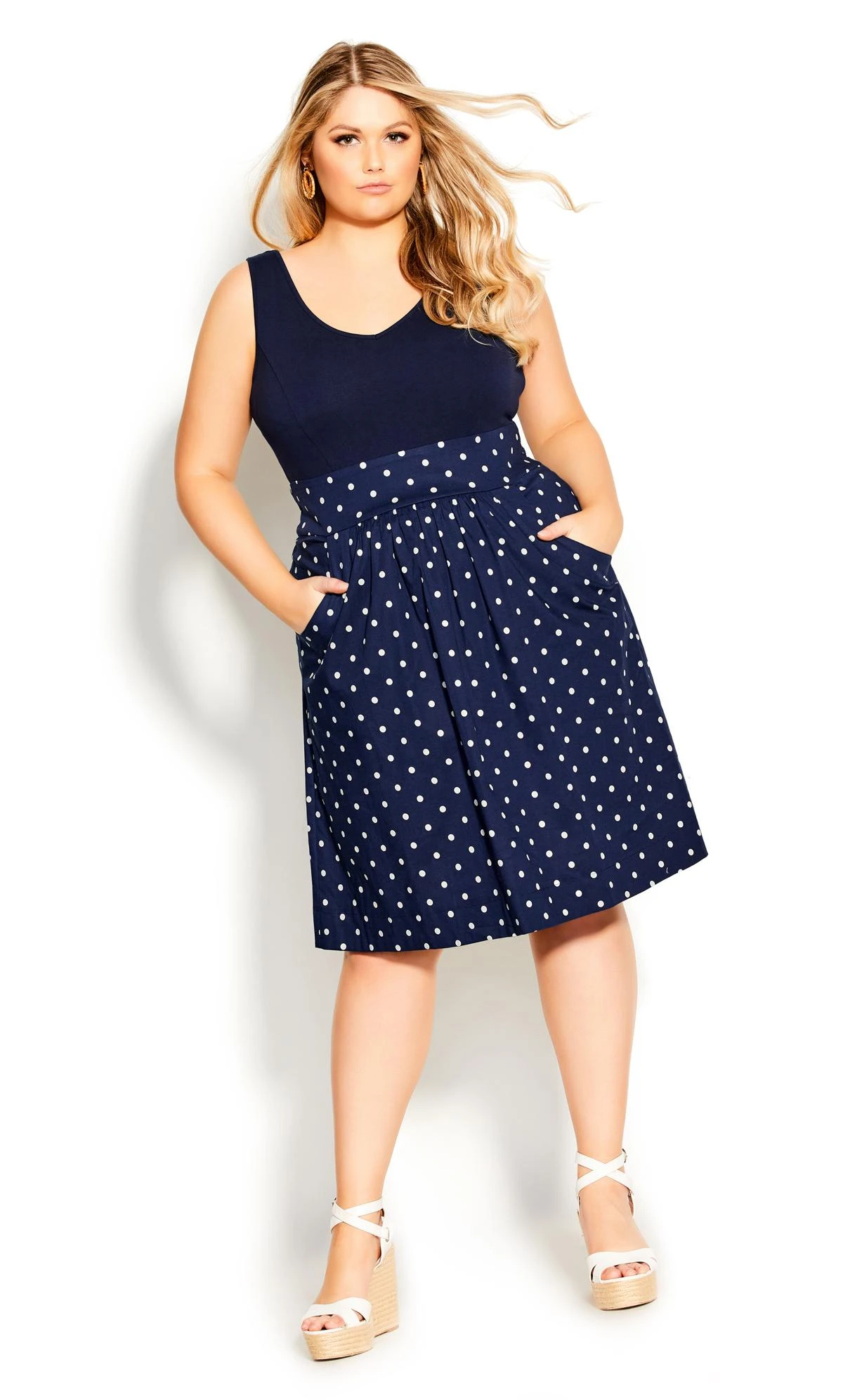 City Chic Navy Blue Spot Print 2 In 1 Dress