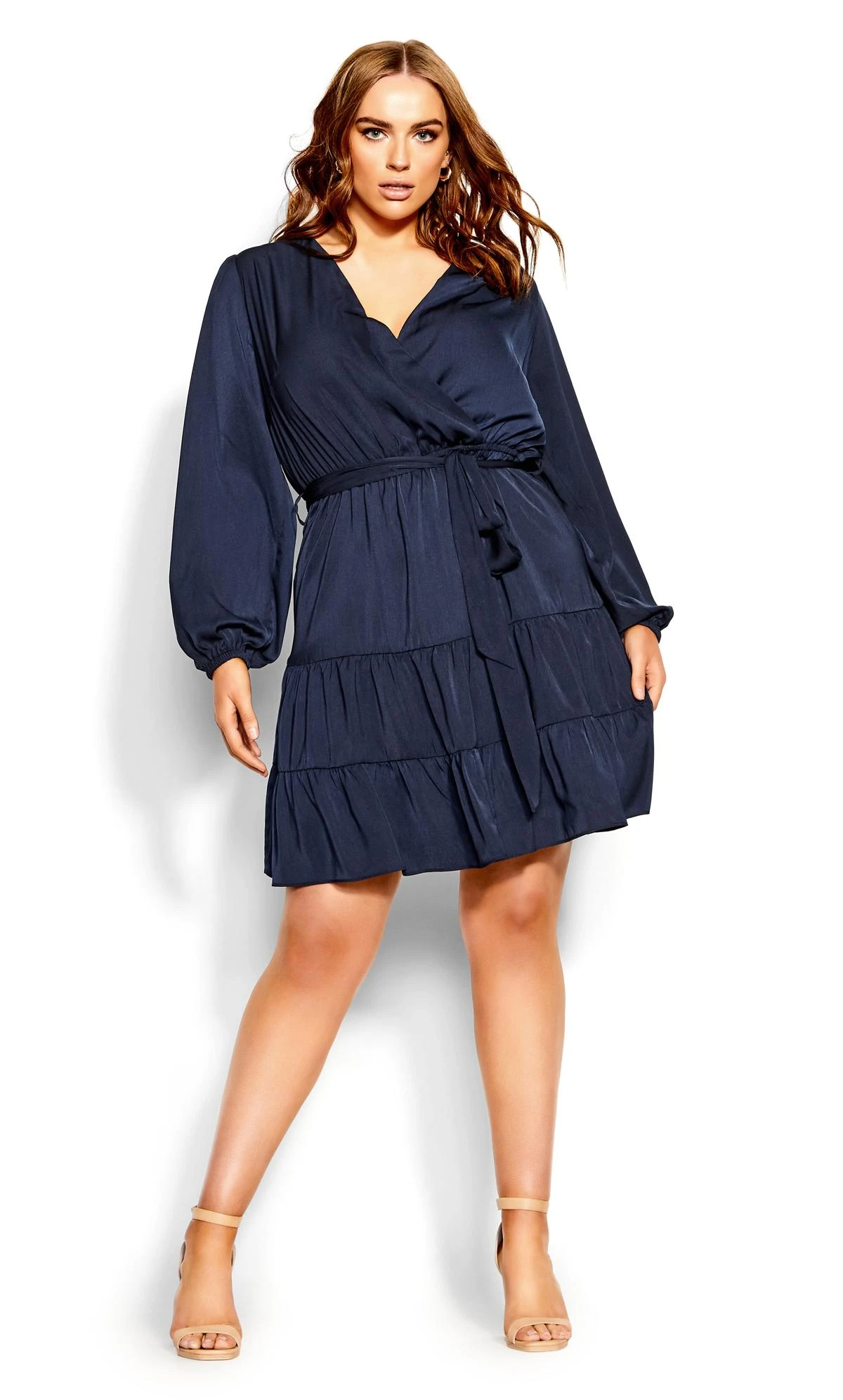– Faux wrap V-neckline