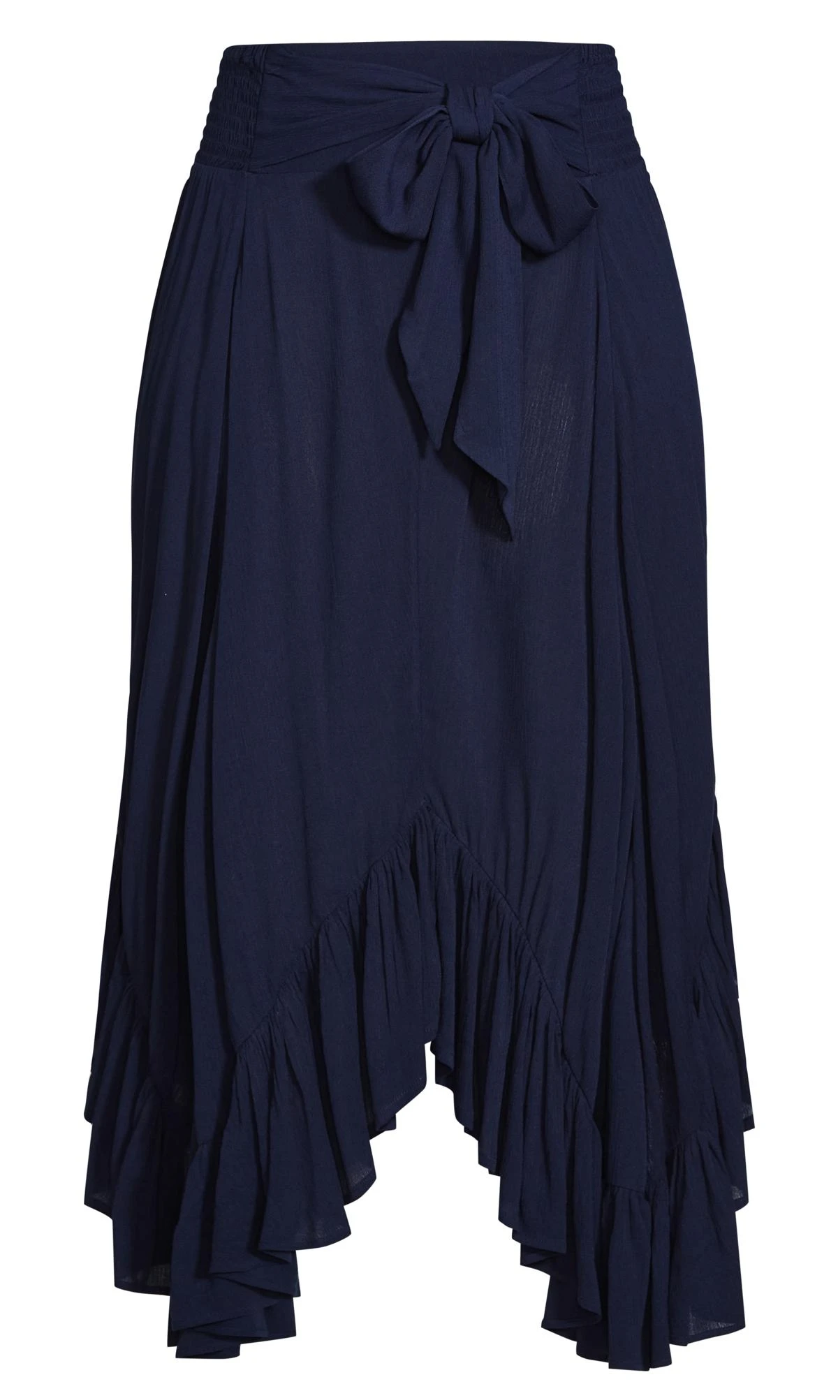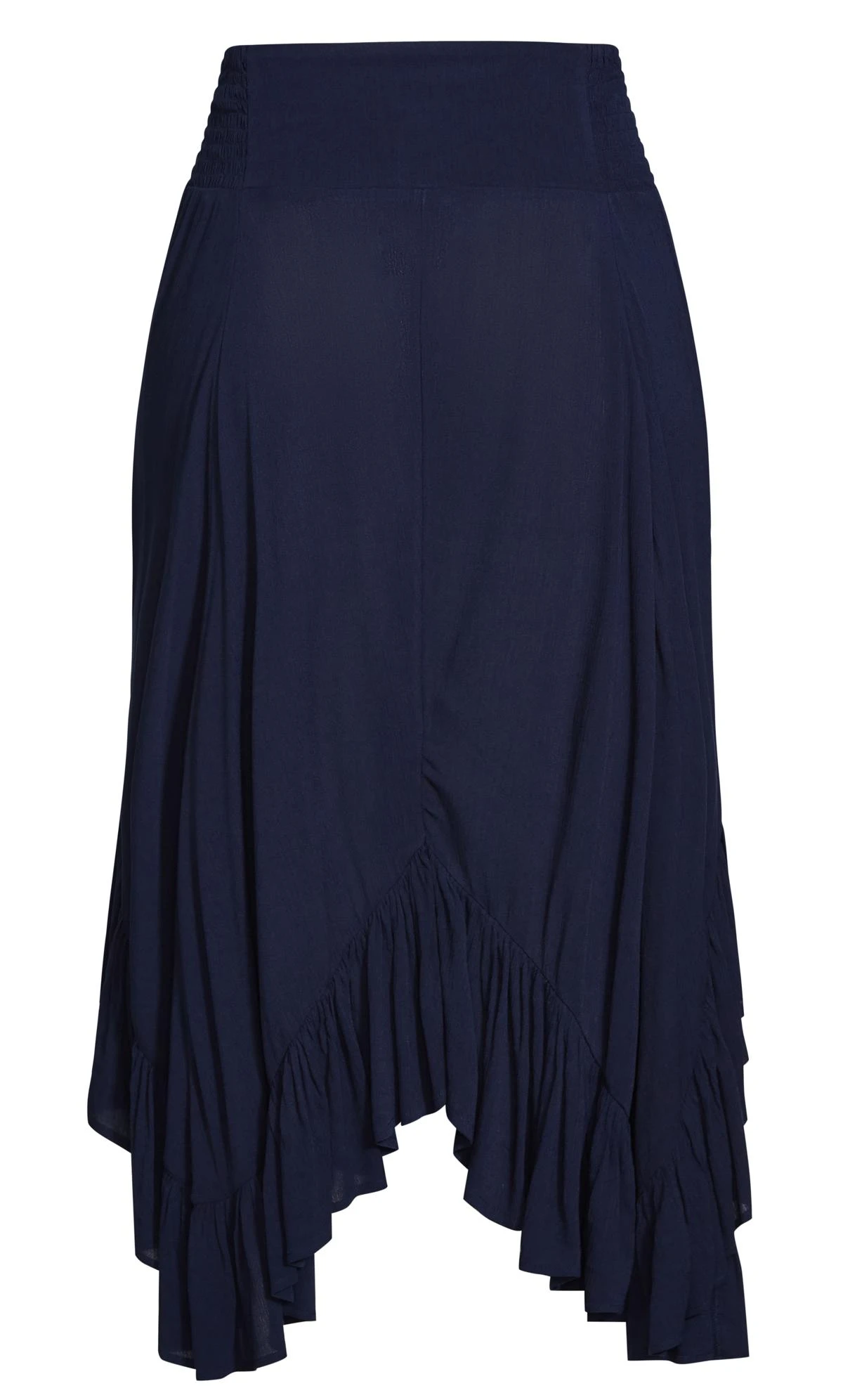 – Ruffled handkerchief hemline