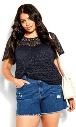 Style this top with corset jeans, ankle boots and a pair of cat-eye sunglasses for effortless elegance.