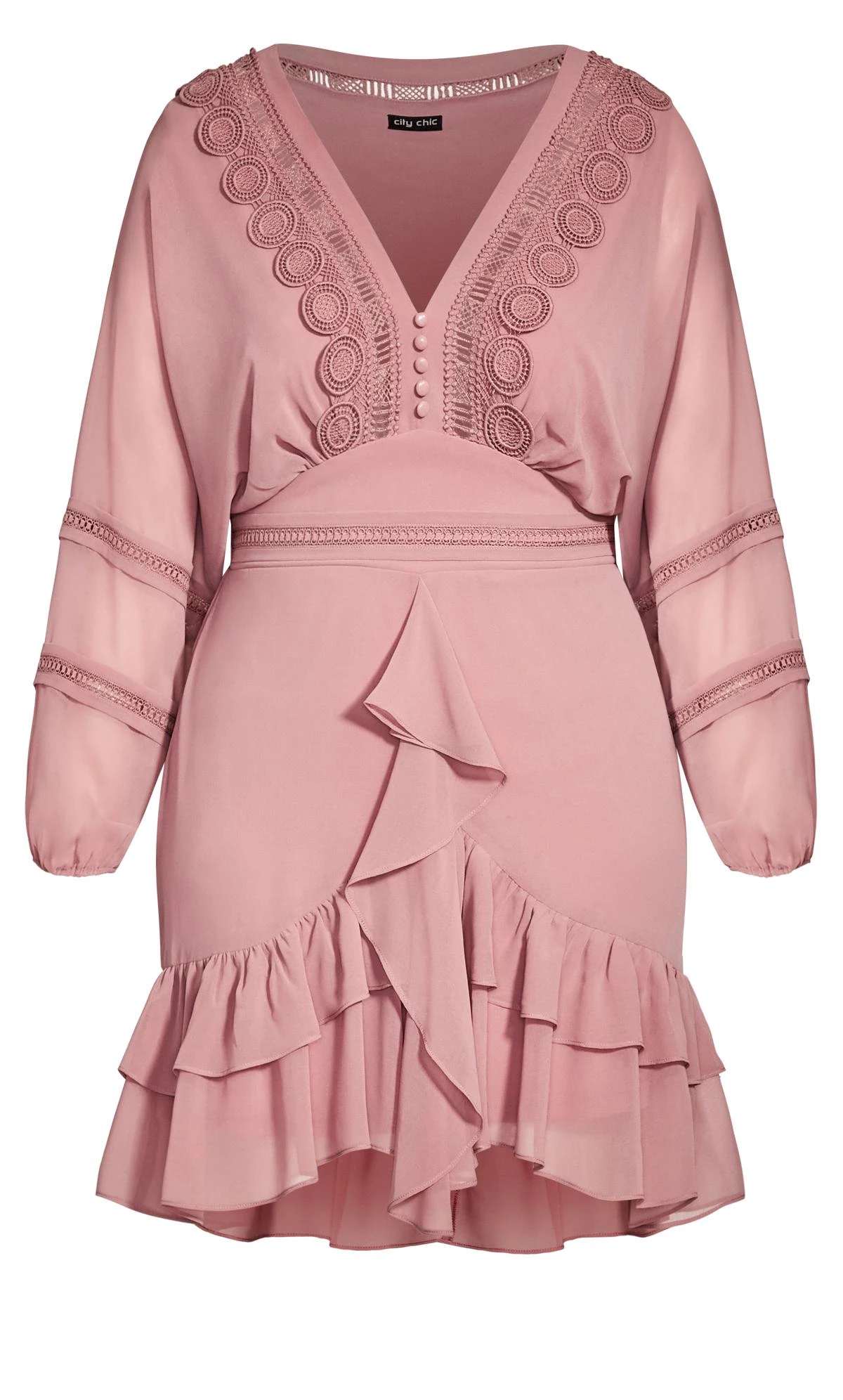 Discover irresistible charm with City Chic’s Pink Chiffon Ruffle Hem Mini Dress, fusing style and grace effortlessly. The soft pink hue exudes a delicate appeal, while the ruffle hem detail adds a touch of femininity. Embrace versatile and trendy fashion with this mini dress, an essential addition to your collection that effortlessly captures contemporary trends and timeless elegance.