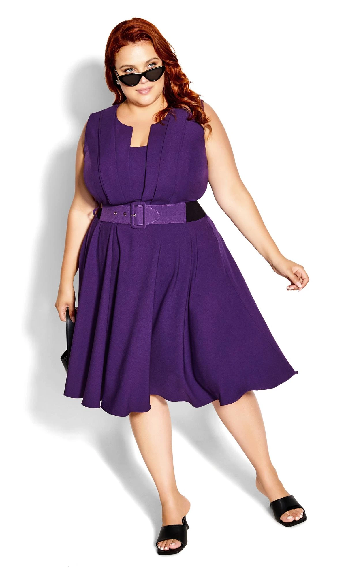 – Pleated, knee-length skirt