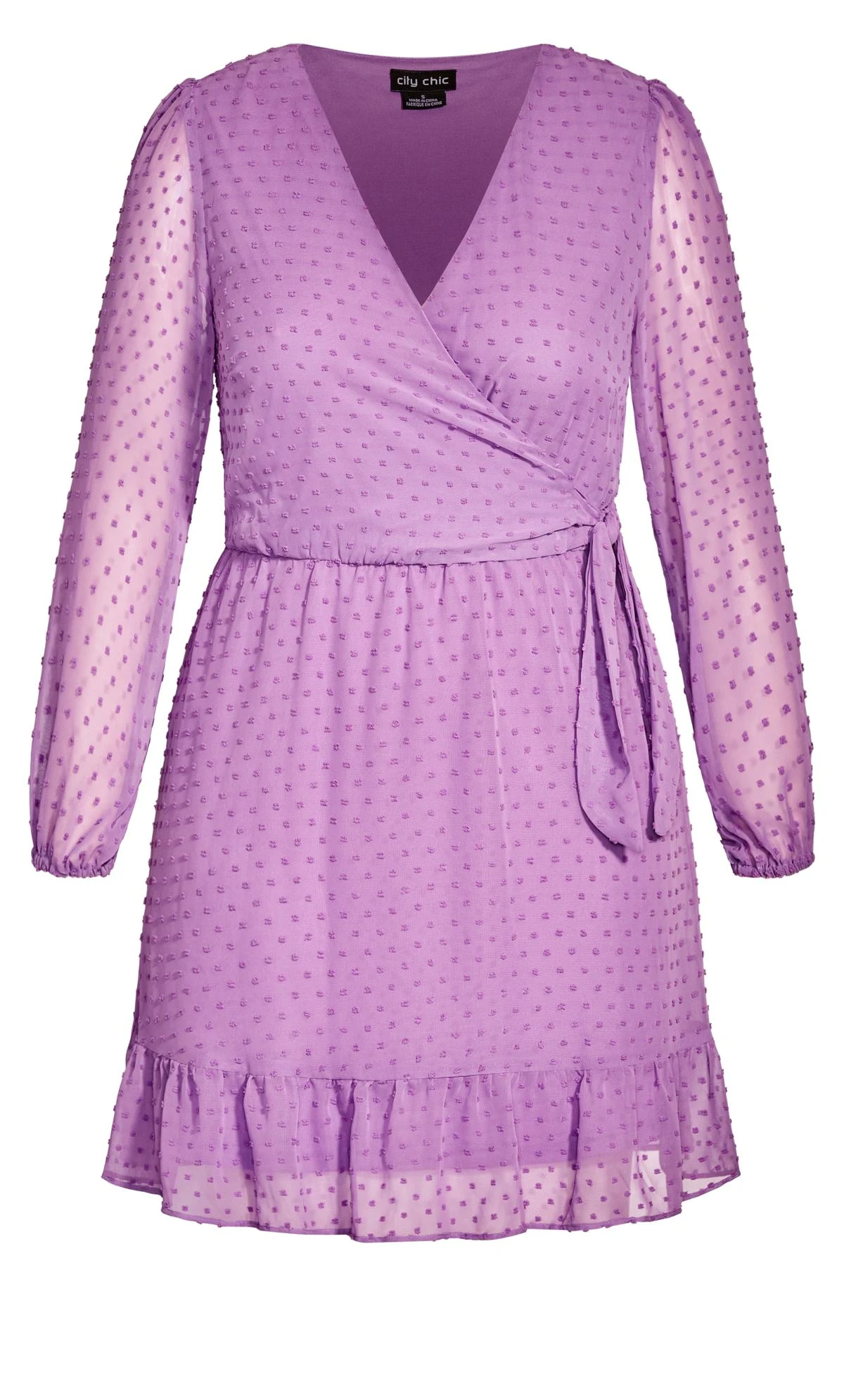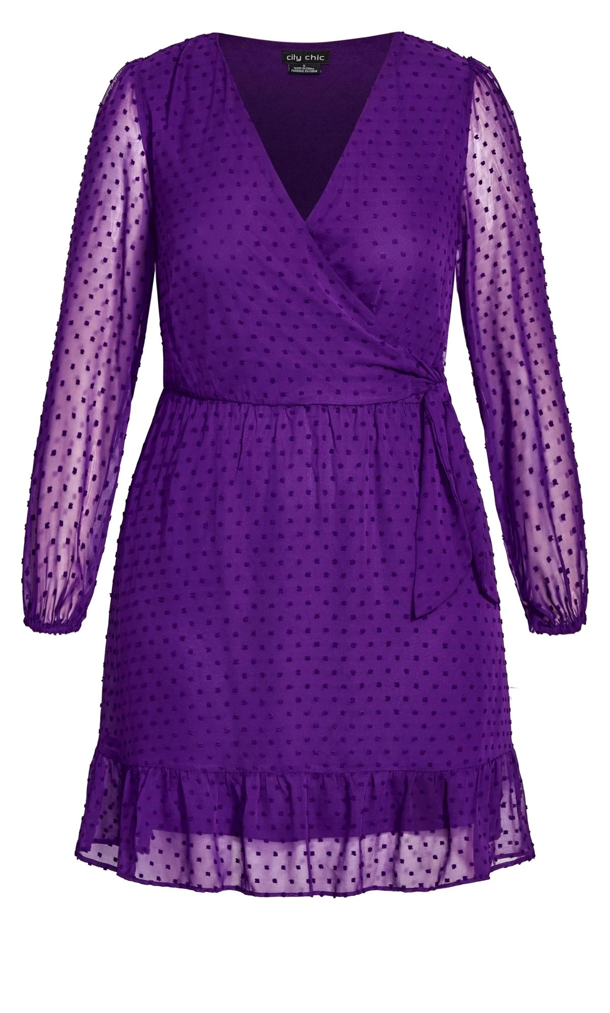 – Faux wrap style V-neckline