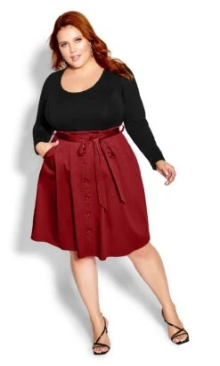 Elevate your style quotient with the City Chic Burgundy Red Button Through Skirt. The burgundy hue is complemented by a button-through design, fusing modern aesthetics with classic charm. From casual outings to trendy ensembles, this skirt offers versatile elegance for every occasion.